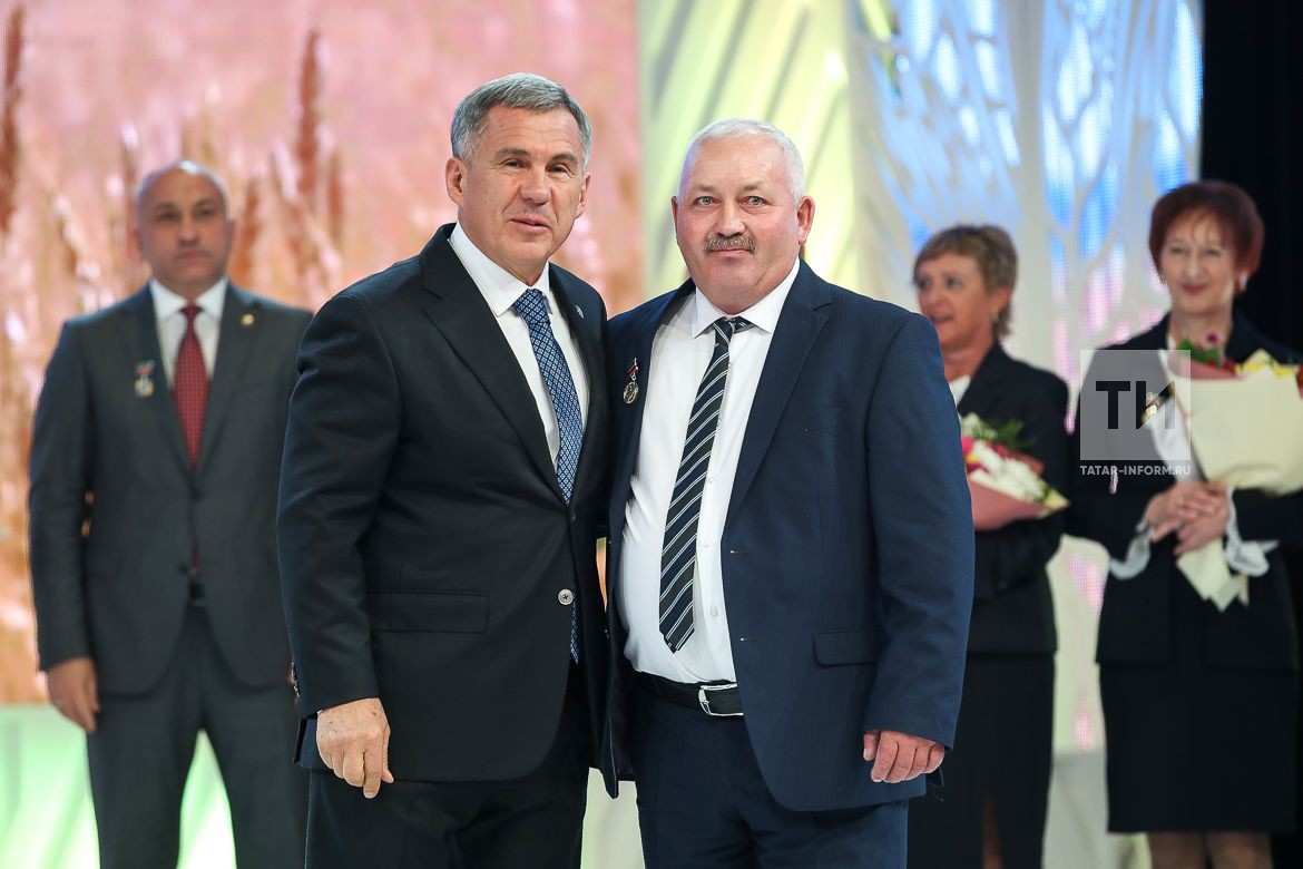 В рамках торжественного мероприятия Рустам Минниханов вручил государственные награды наиболее отличившимся работникам отрасли – это медали «За доблестный труд», звания «Заслуженный агроном Республики Татарстан», «Заслуженный ветеринарный врач Республики Татарстан», «Заслуженный работник сельского хозяйства РТ», «Заслуженный животновод Республики Татарстан», «Заслуженный зоотехник Республики Татарстан», «Заслуженный механизатор Республики Татарстан», всего были награждены 16 человек. В числе награждённых – алексеевец Ринат Нариманович Ситдиков – механизатор колхоза «Алга» Алексеевского района. Он удостоился звания заслуженного механизатора сельского хозяйства Республики Татарстан.