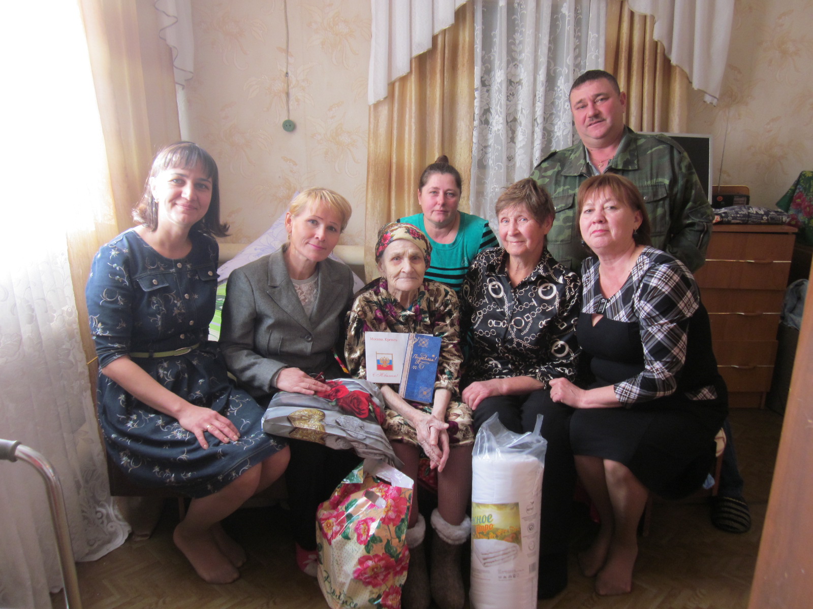 и вручили ей поздравительную открытку от Президента РФ В.В.Путина,