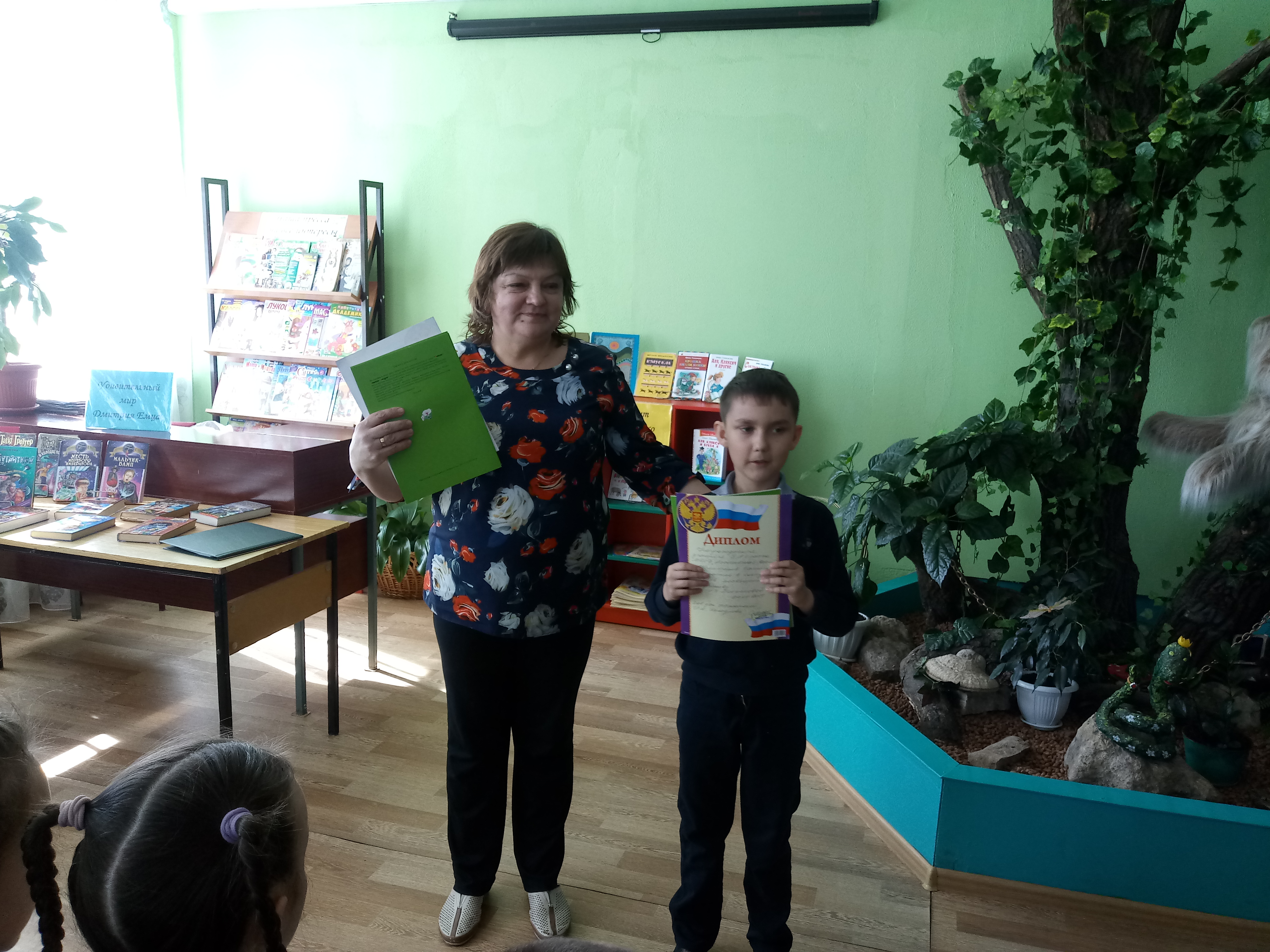 На урок пришли ученики 3 "А" класса Алексеевской СОШ №2. Веселые и серьезные, теплые и добрые стихи, сказочные повести, переводы и "веселые учебники" - все творчество Ирины Петровны посвящено детям. На мероприятии прошел конкурс чтецов. Победители получили дипломы и сладкие призы.