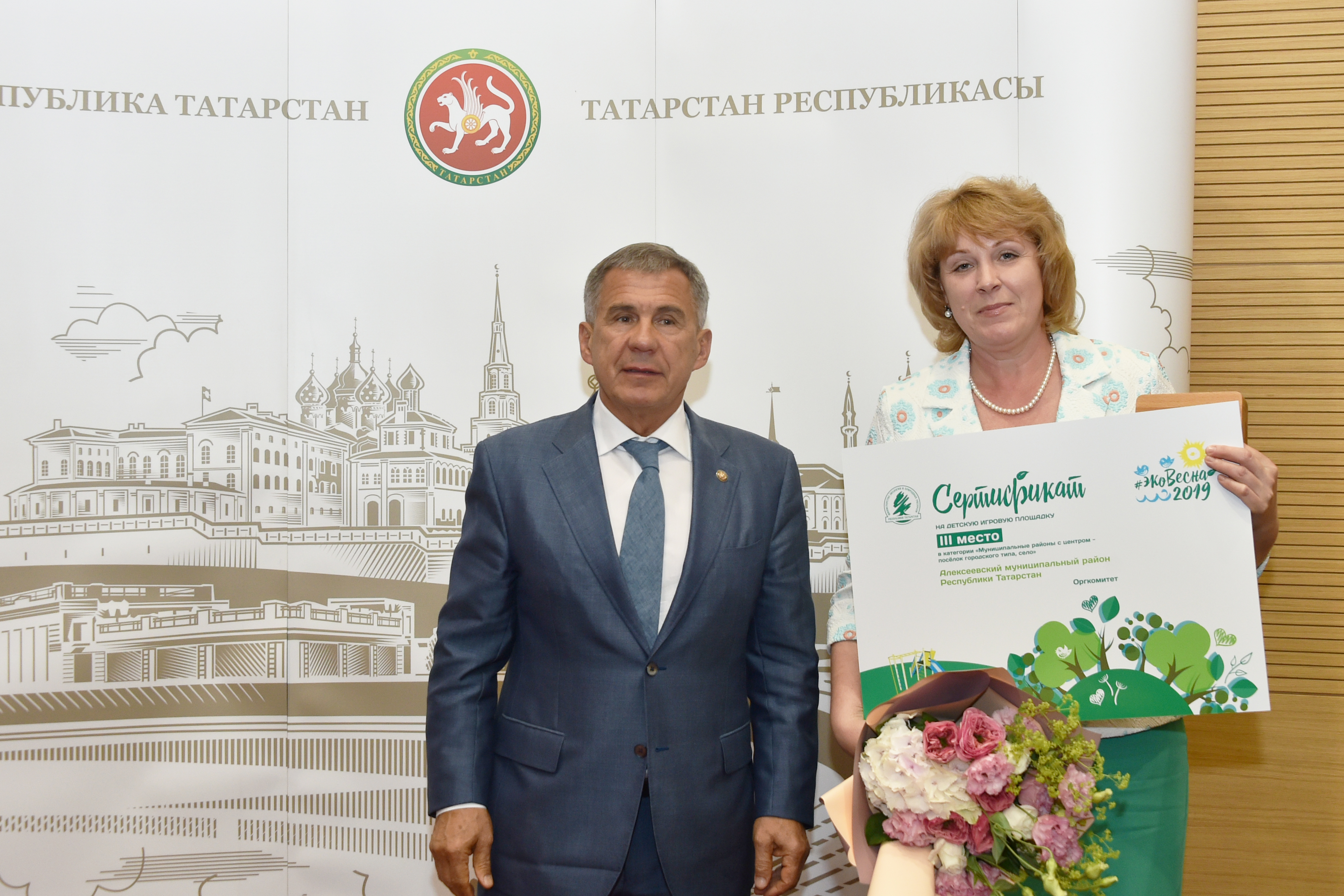 1 июня в Кабинете Министров Республики Татарстан Президент Рустам Минниханов наградил самых активныхучастников санитарно-экологического двухмесячника «Эковесна-2019». Алексеевский район по итогам конкурса занял почётное 3 место в номинации «Лучшее муниципальное образование» в категории «Муниципальные районы с центром – статус поселок городского типа, село».