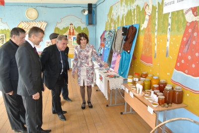 Все гости при входе в клуб могли ознакомиться с творчеством и продуктами производства, изготовленными шаминцами: пуховыми подушками, медом, плетеными корзинками и многим другим.