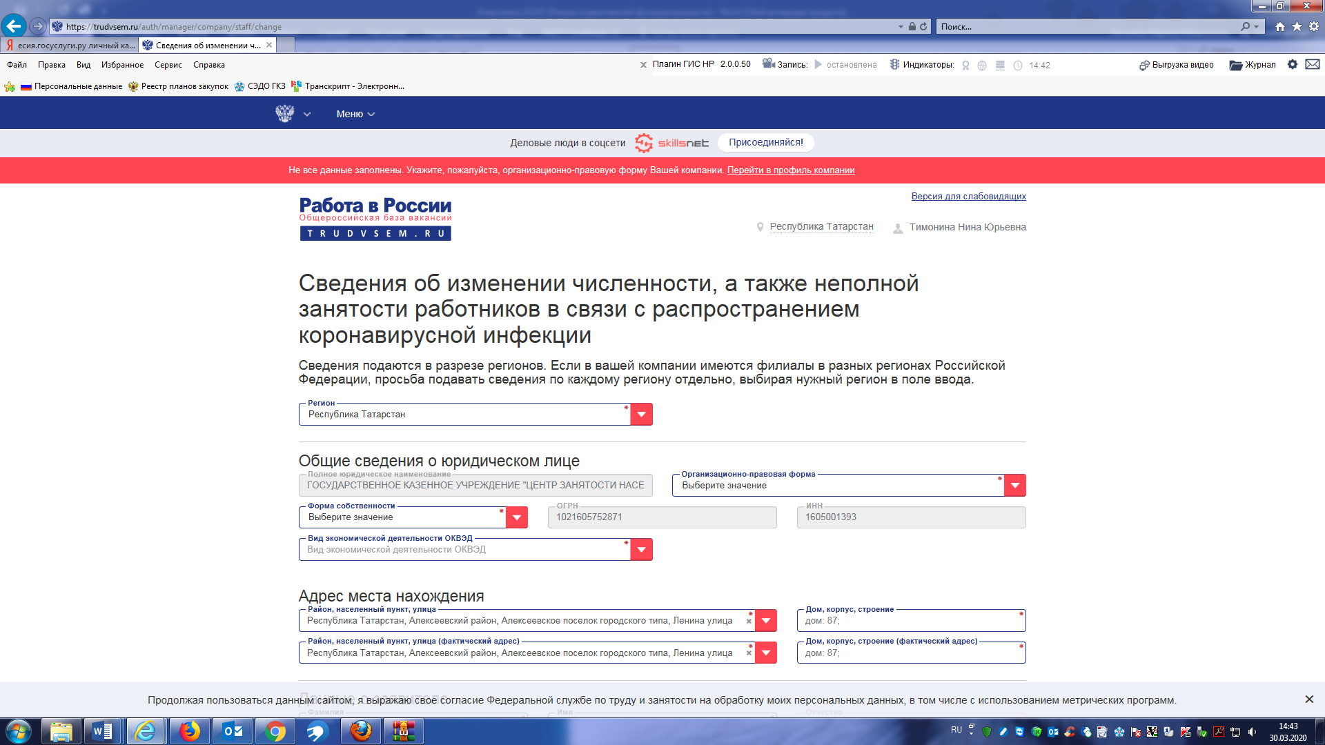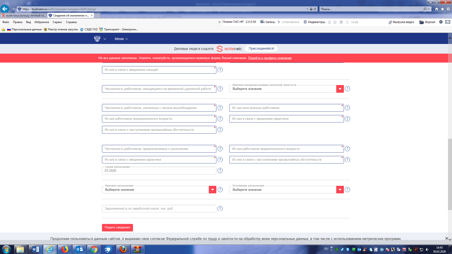 4 шаг. Как только зашли, выйдет подача отчетности Сведения об изменении
