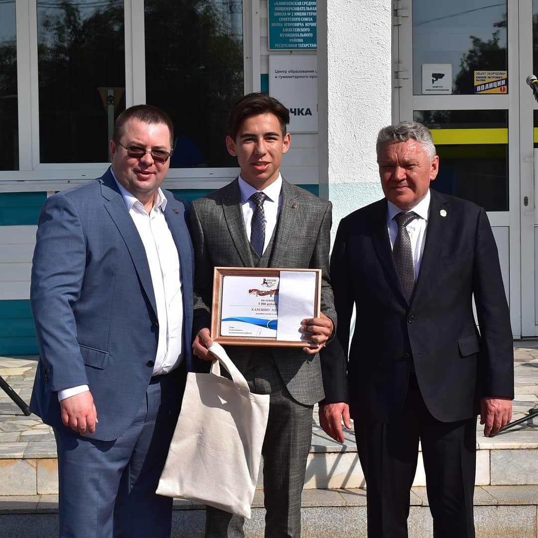 Глава района Сергей Демидов и заместитель Премьер-министра Республики Татарстан - министр образования и науки Республики Татарстан Рафис Бурганов наградили ребят-высокобальников, тех, кто показал достойные результаты при сдаче ЕГЭ. Также в торжественной обстановке завтрашним первоклашкам вручили рюкзаки и школьные принадлежности в рамках благотворительной акции "Помоги собраться в школу".