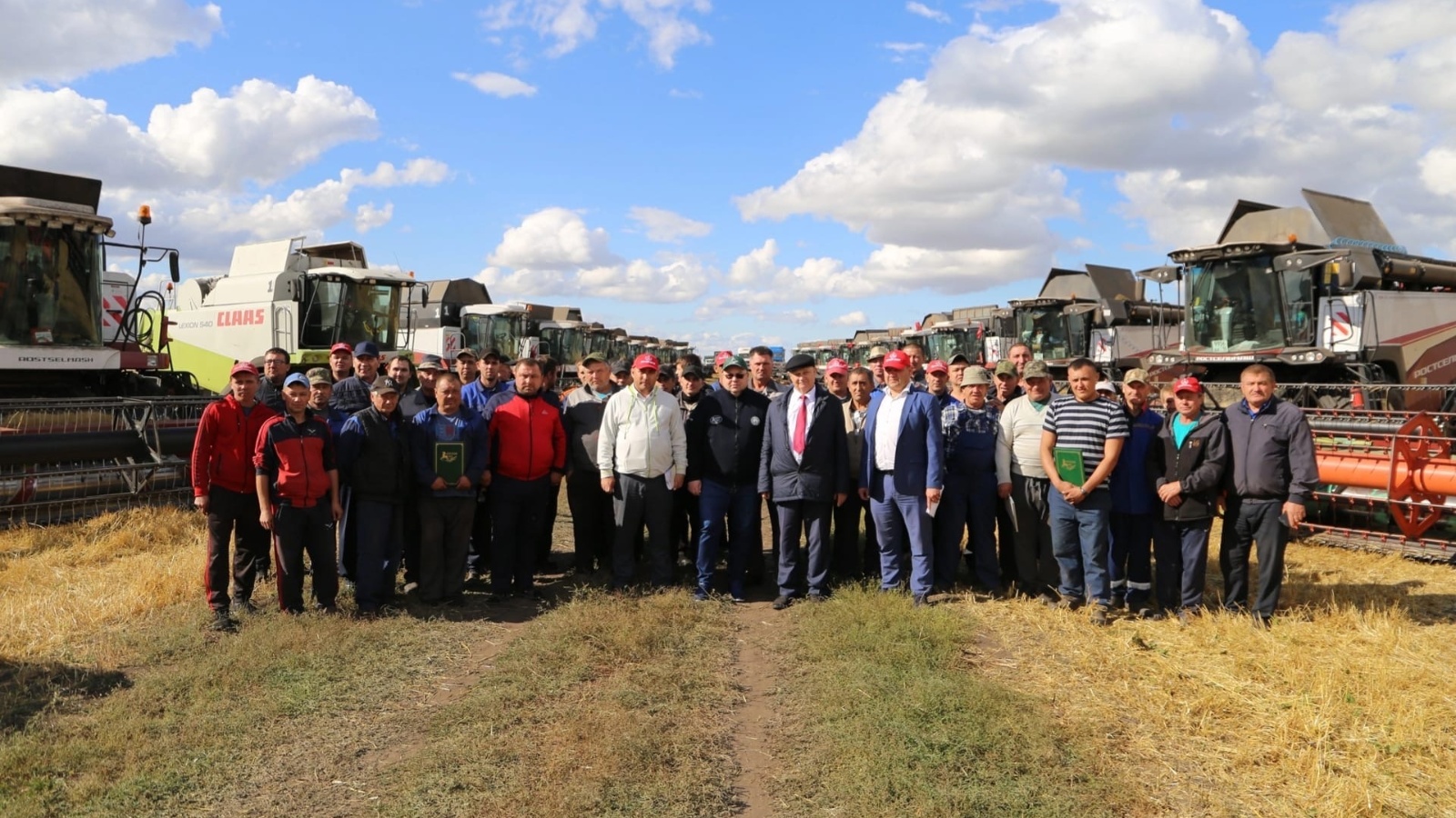 Глава Алексеевского района Сергей Демидов и председатель сельскохозяйственного производственного кооператива «Звениговский» Иван Казанков наградили лучших комбайнеров и водителей.