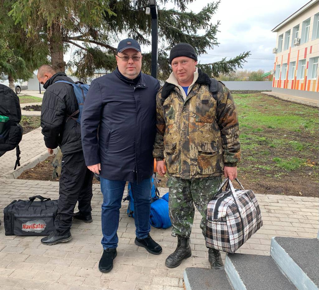 Перед отправкой мобилизованных мужчин напутствовал Глава района Сергей Демидов. Каждому из призванных вручили рюкзак со всем необходимым: телефоном, павербанком, теплыми вещами, аптечкой и пр.