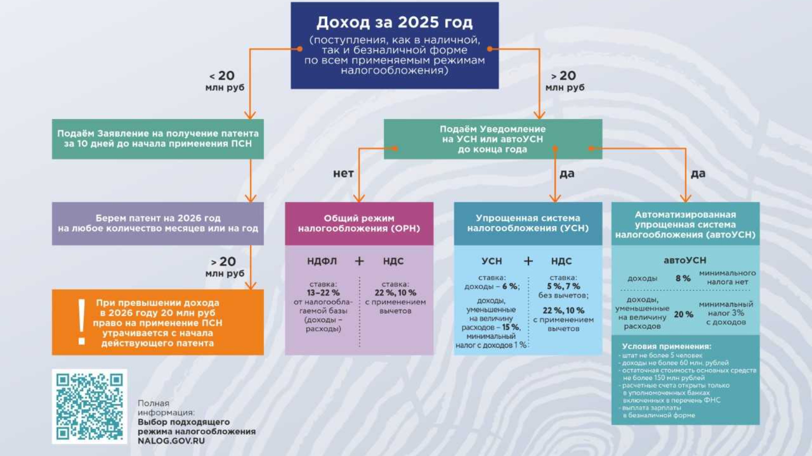 Важно, что лимит в 20 млн рублей будет действовать и в 2026 году: его превышение в течение года приведёт к потере права на патент. Для тех, кто не может спрогнозировать доходы, предусмотрена возможность оформлять патент поквартально или помесячно — в этом случае право на ПСН будет утрачено только с начала периода, на который выдан последний патент.