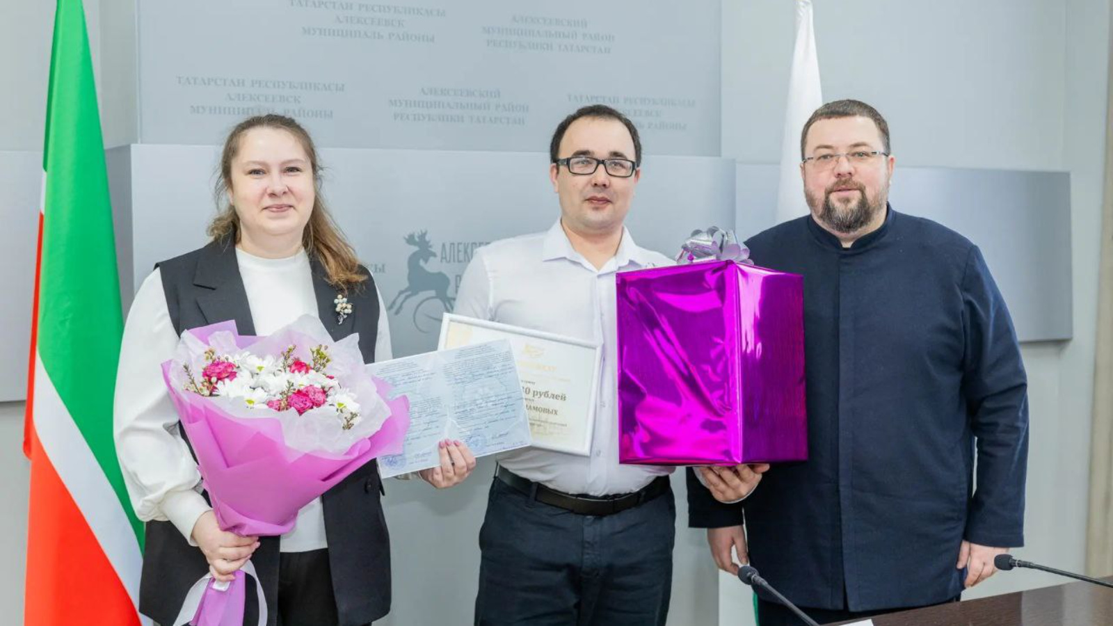 Торжественное вручение сертификата провёл глава Алексеевского муниципального района Сергей Анатольевич Демидов. Он поздравил семью с важным событием и вручил памятный подарок.