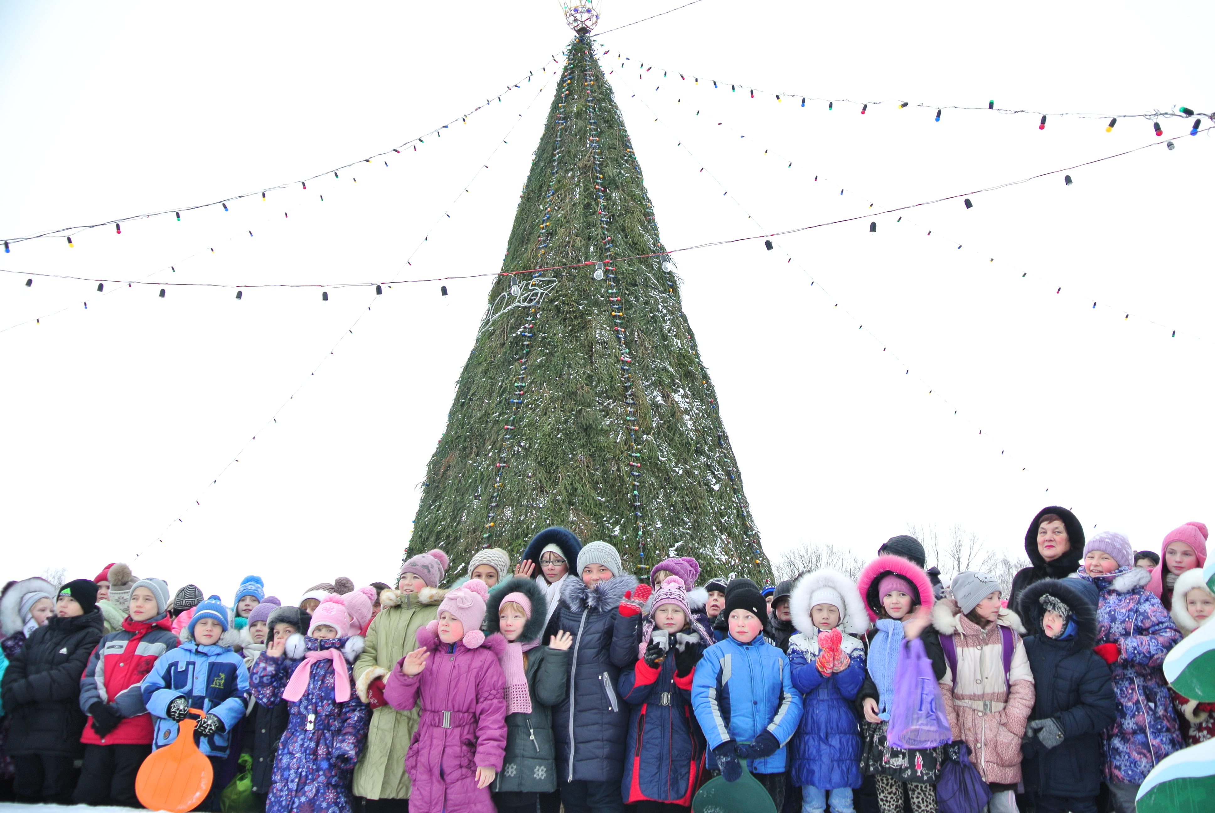 – Очень красиво ее нарядили. У нас дома почти такая же стоит, только пушистая и меньше.