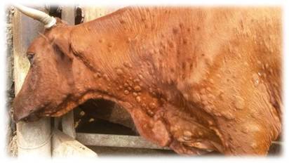 Причиной подозрения на заболевание послужило выявление признаков заболевания КРС нодулярным дерматитом, а именно: