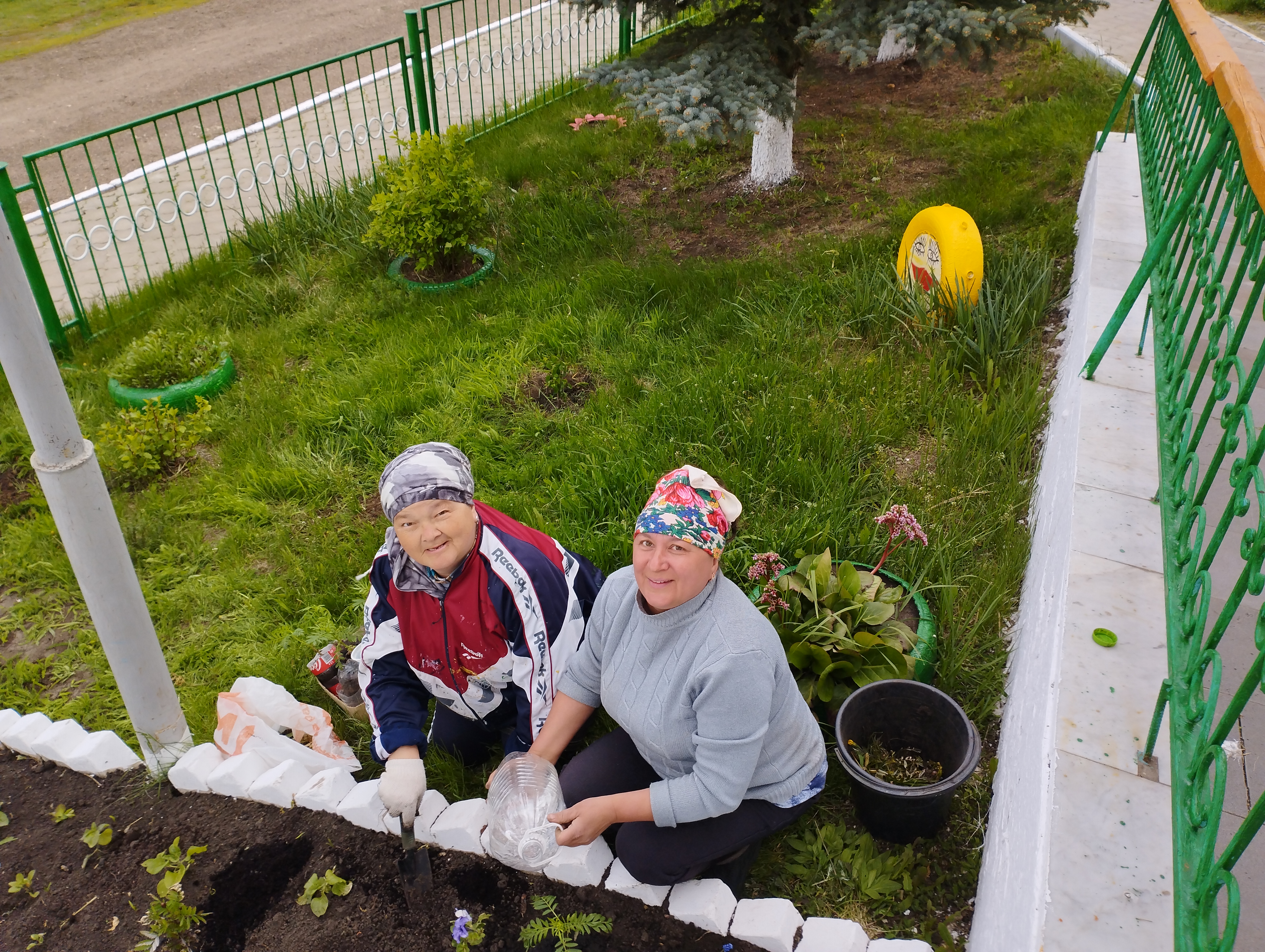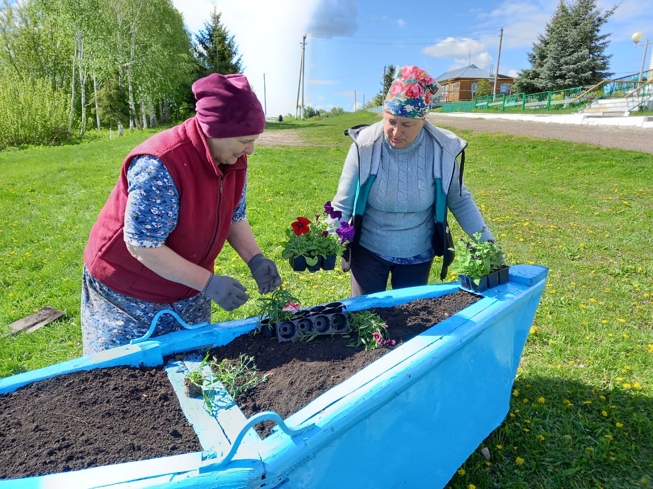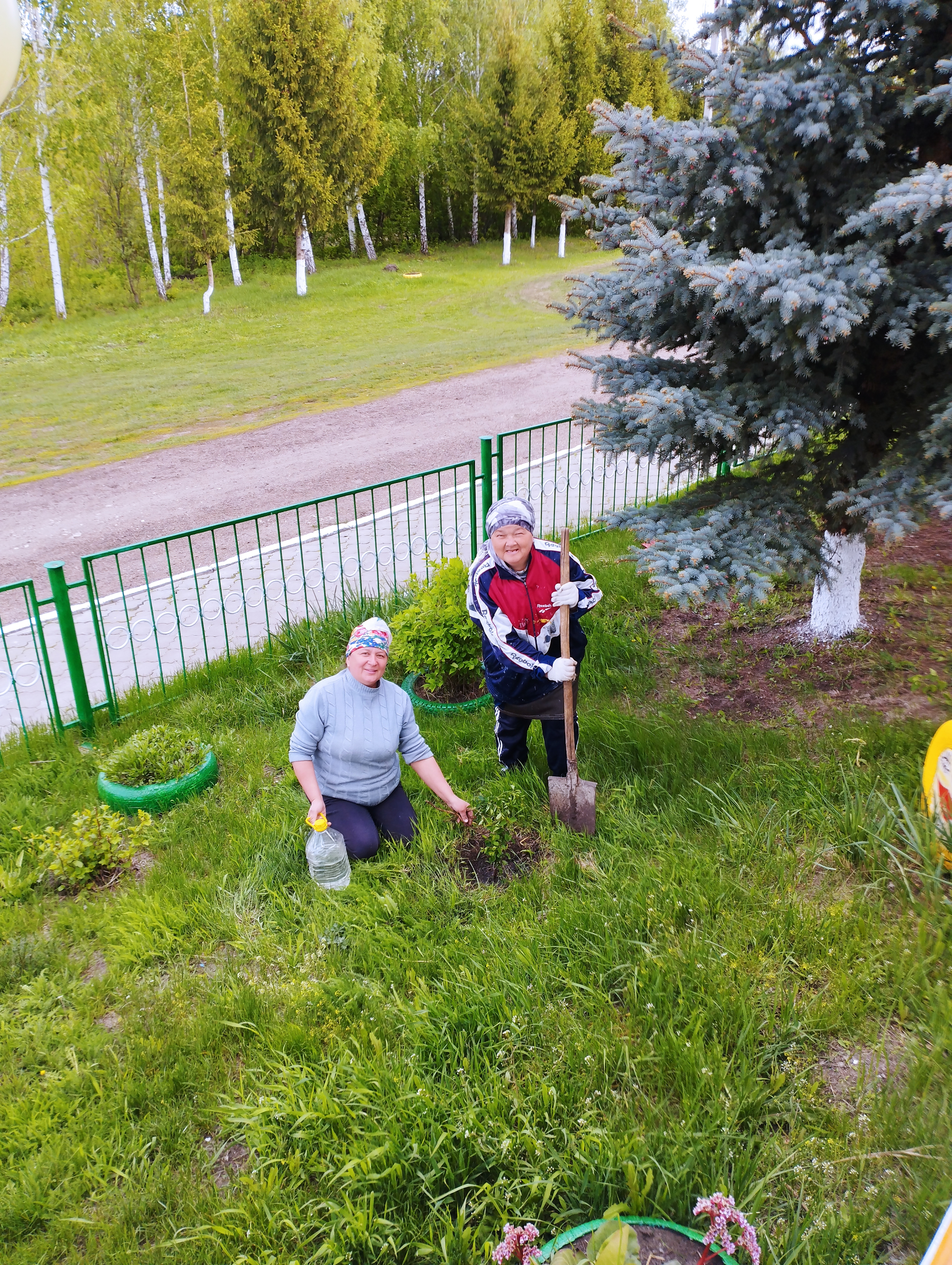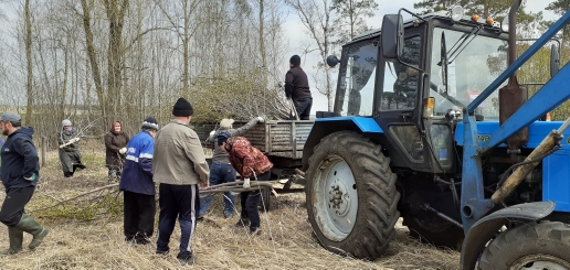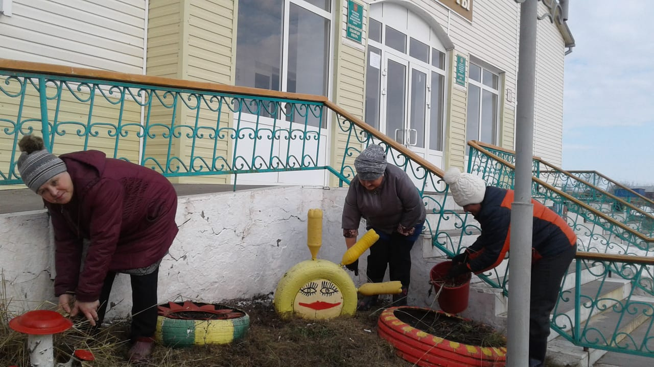 Работники исполкома и сельской библиотеки на благоустройстве территории