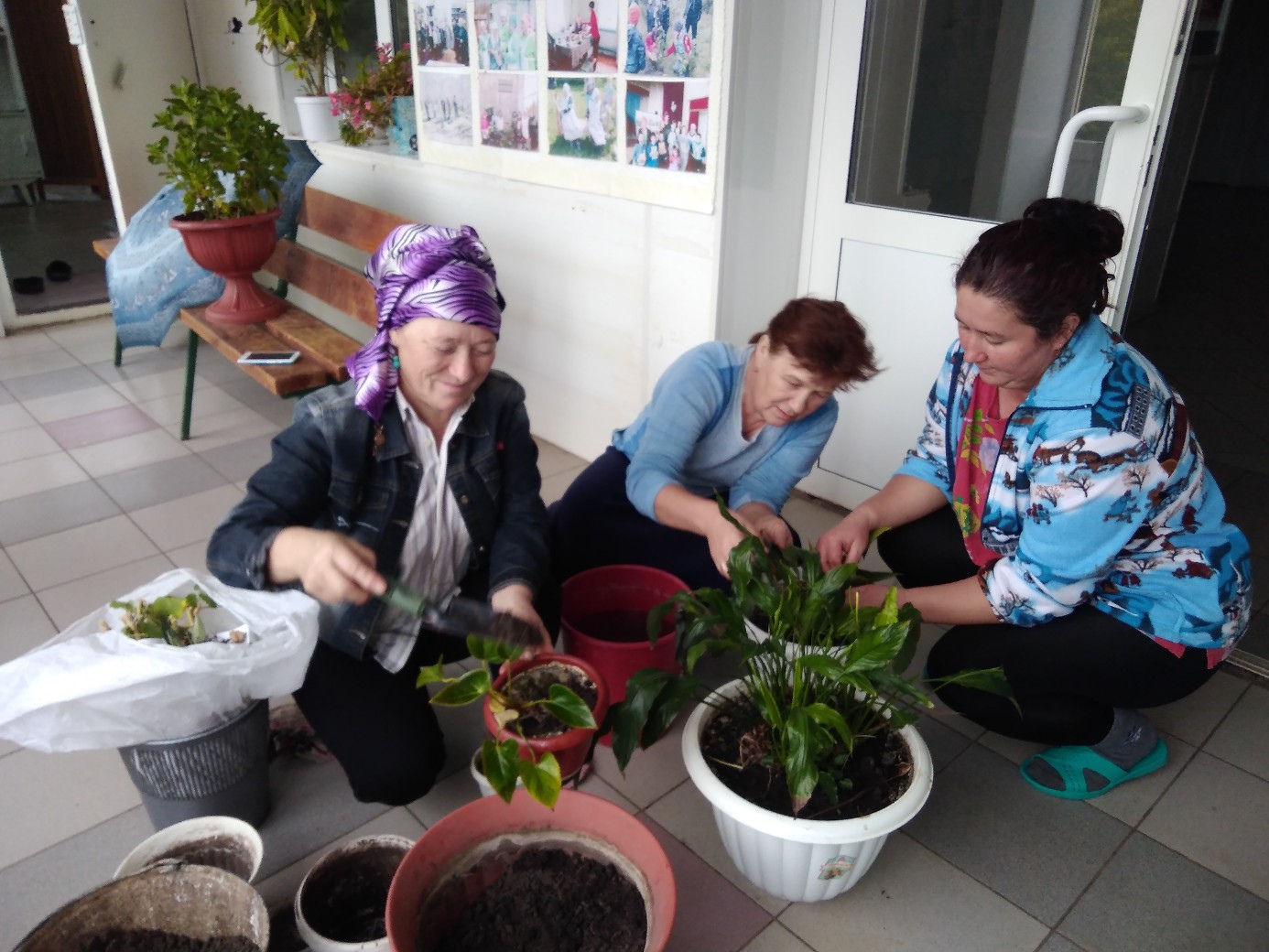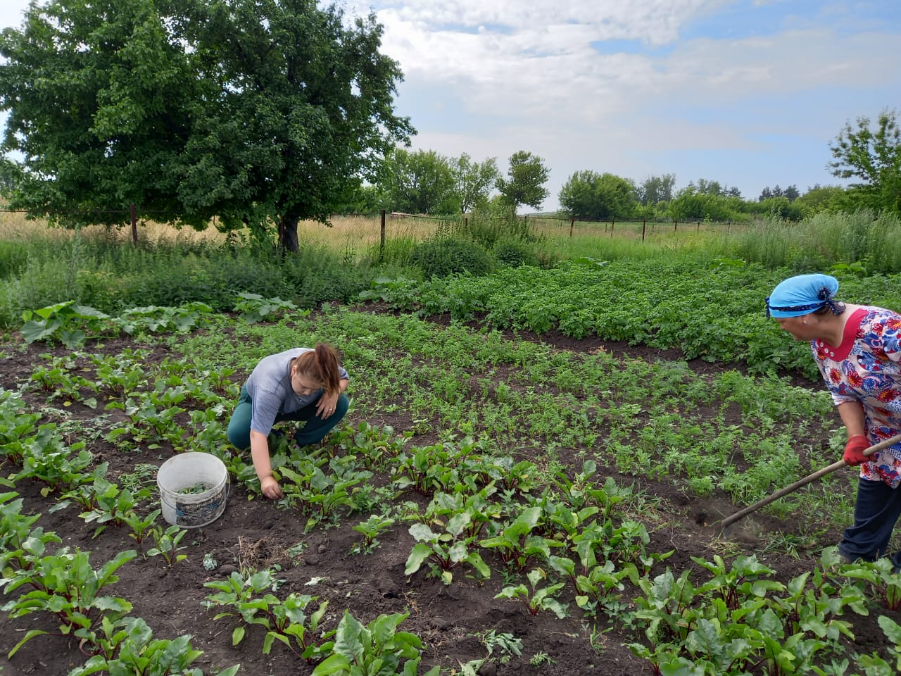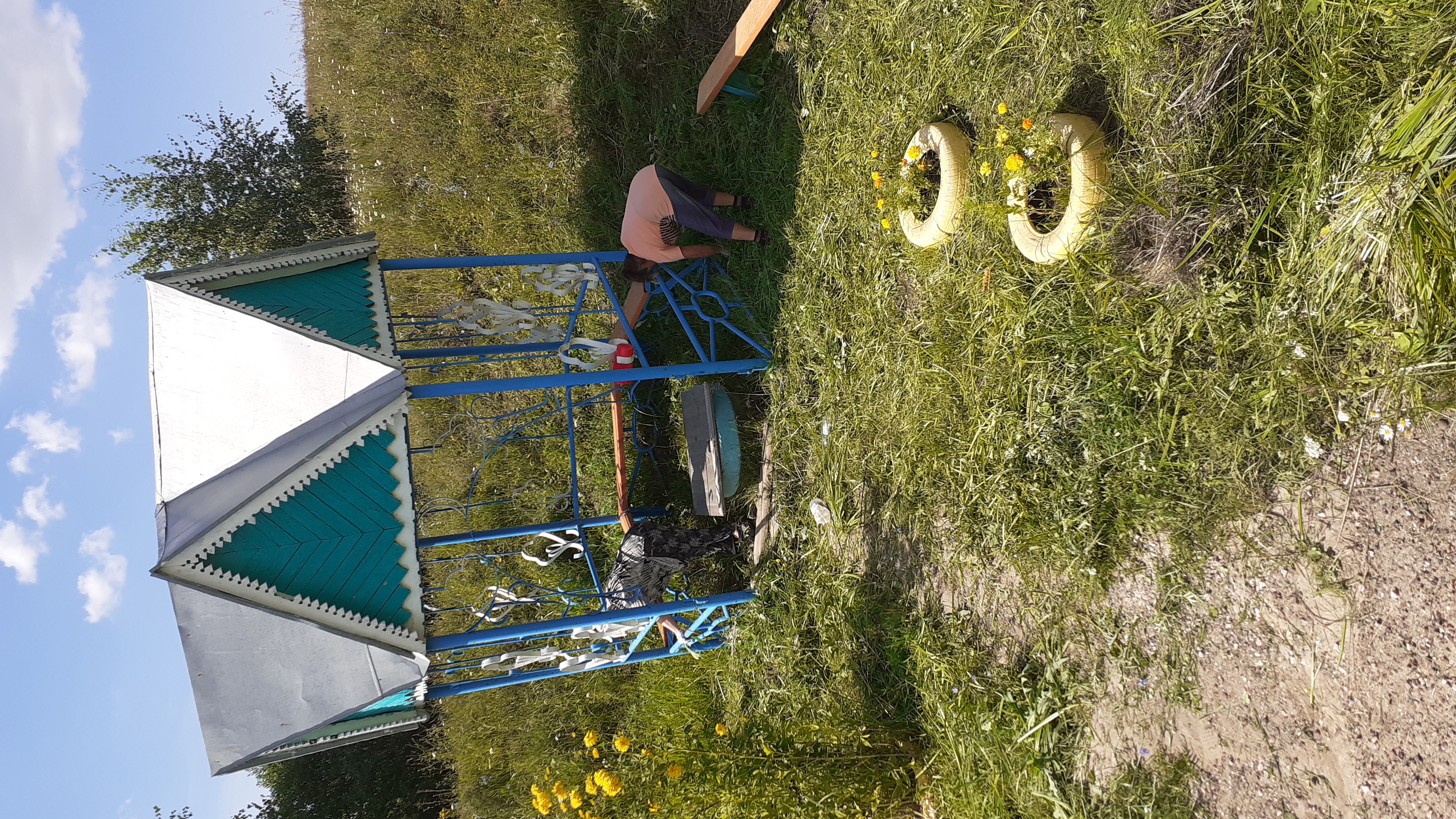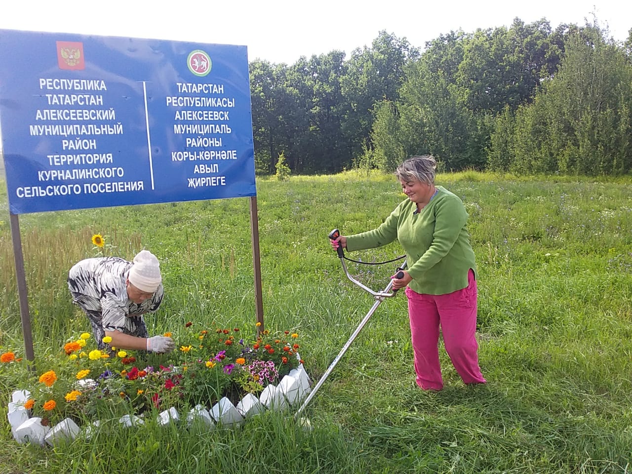 Работники исполкома и сельской библиотеки на благоустройстве территории