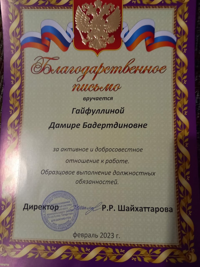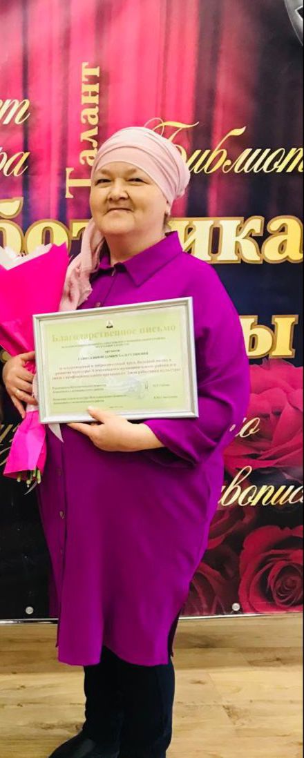 За добросовестную работу награждена Благодарственным письмом библиотекарь Сухокурналинской сельской библиотеки Гайфуллина Д.Б.