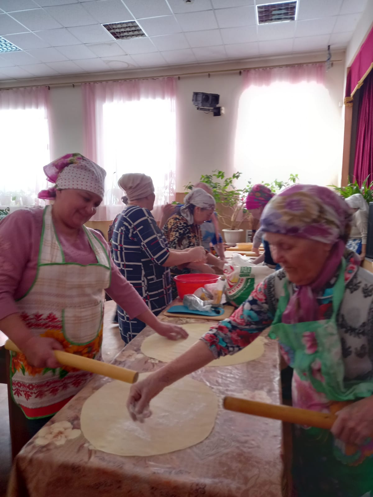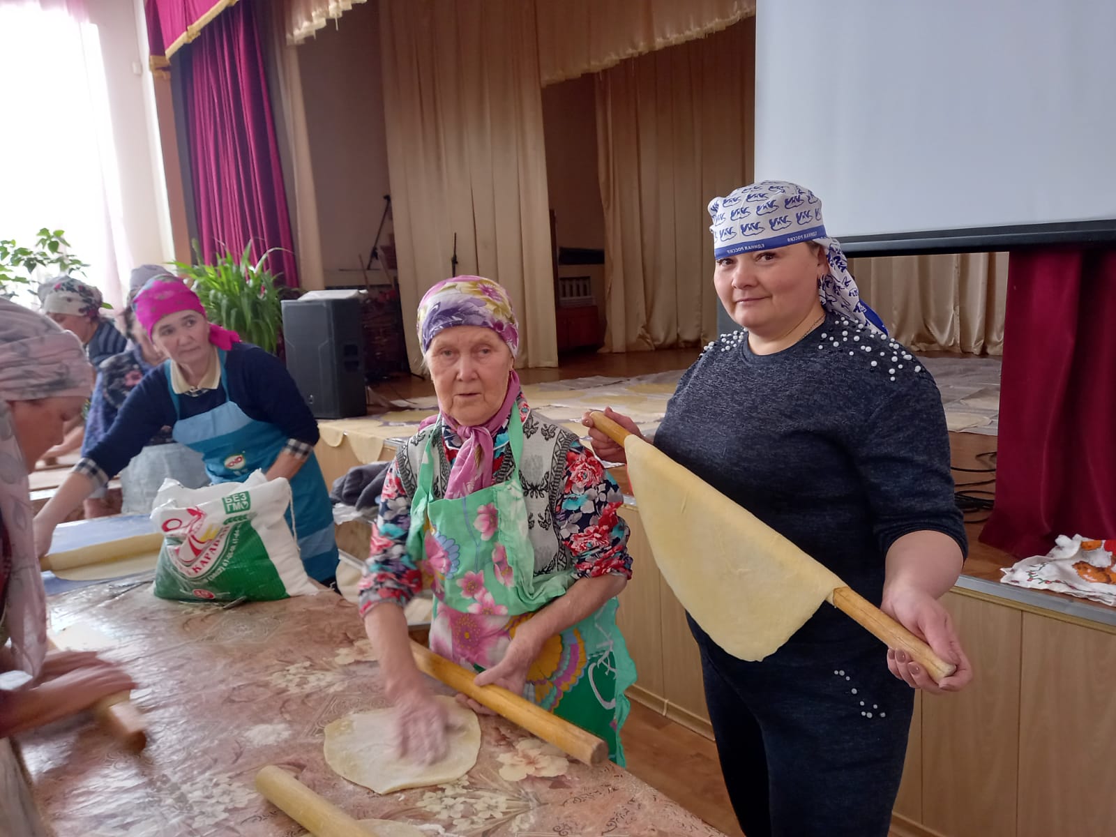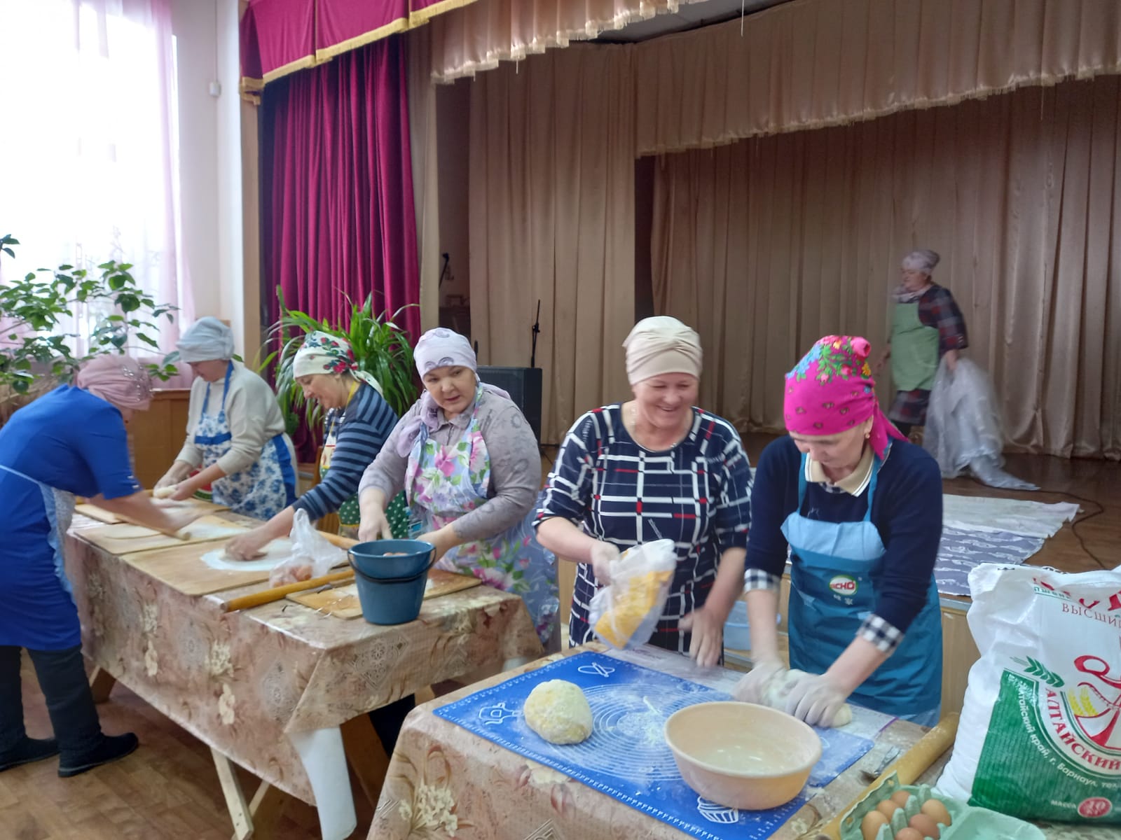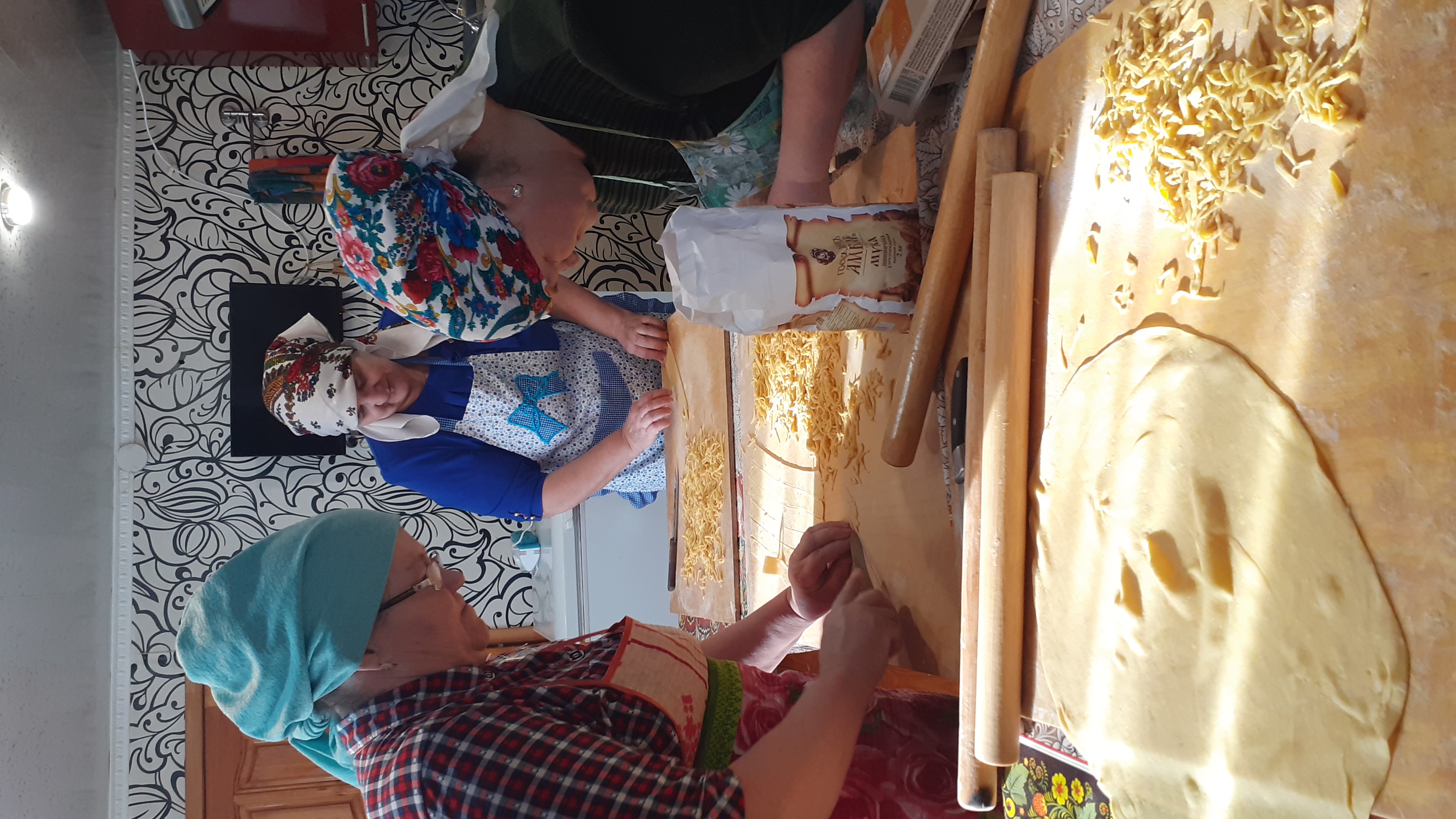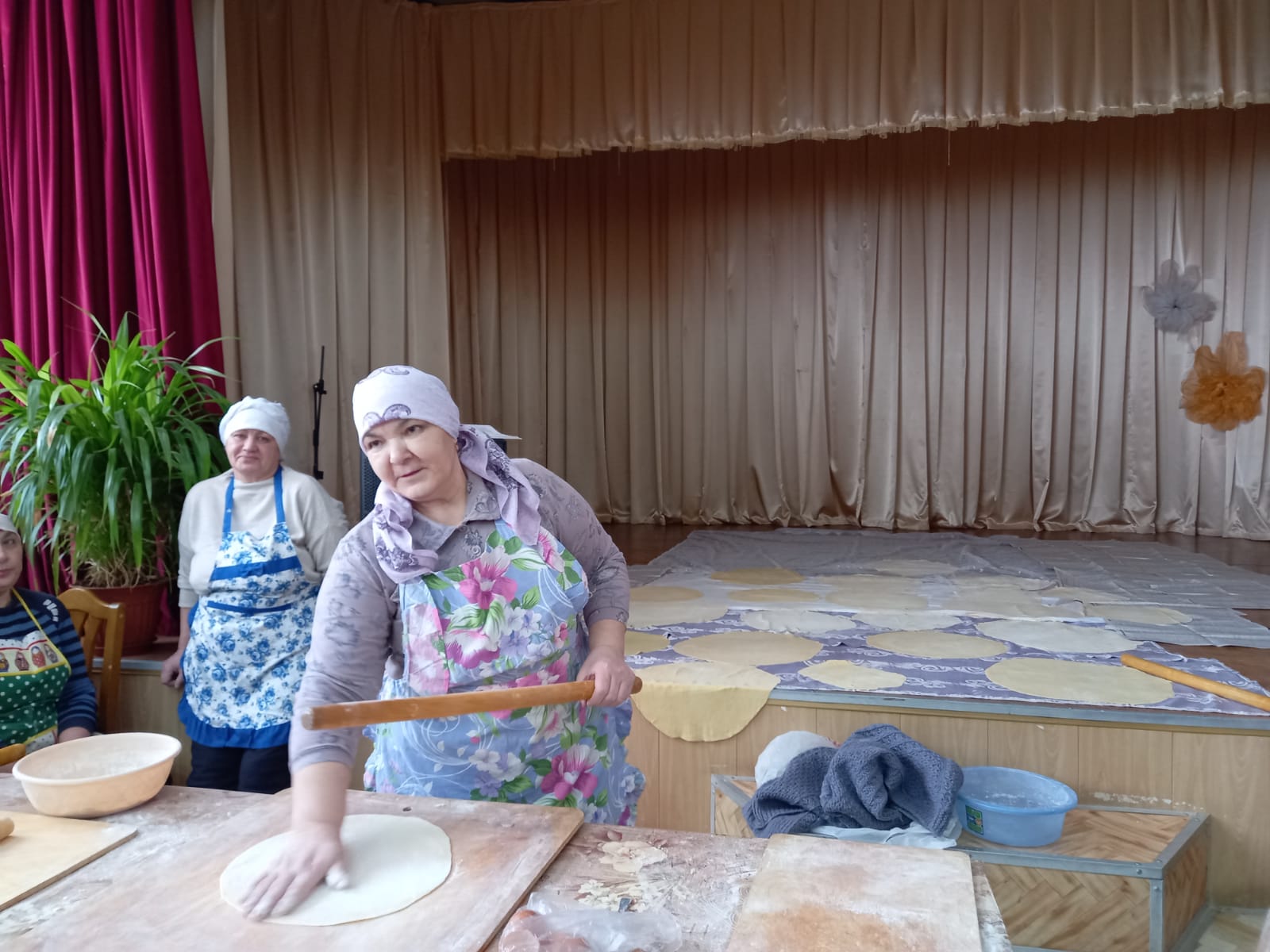 В зале Сухокурналинского СДК женщины села нарезали домашнюю лапшу для мобилизованных