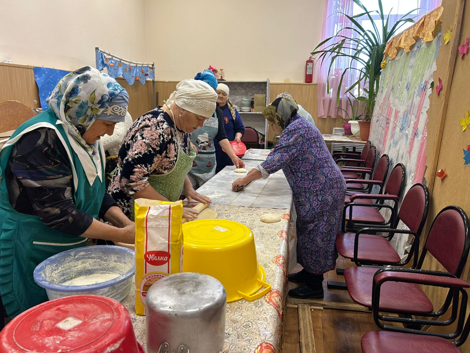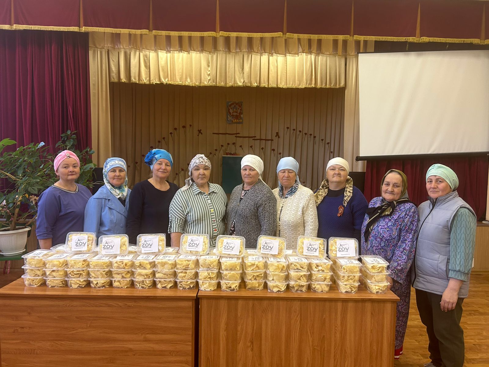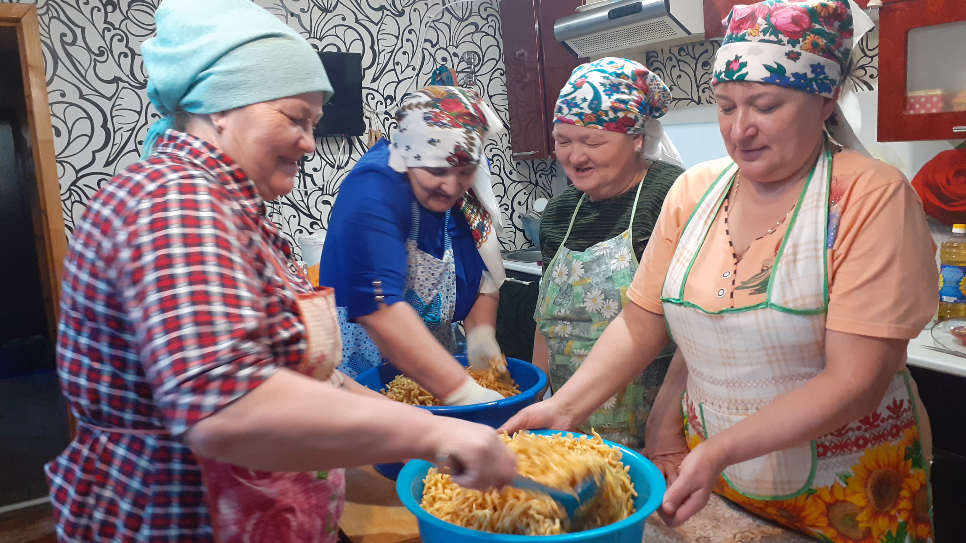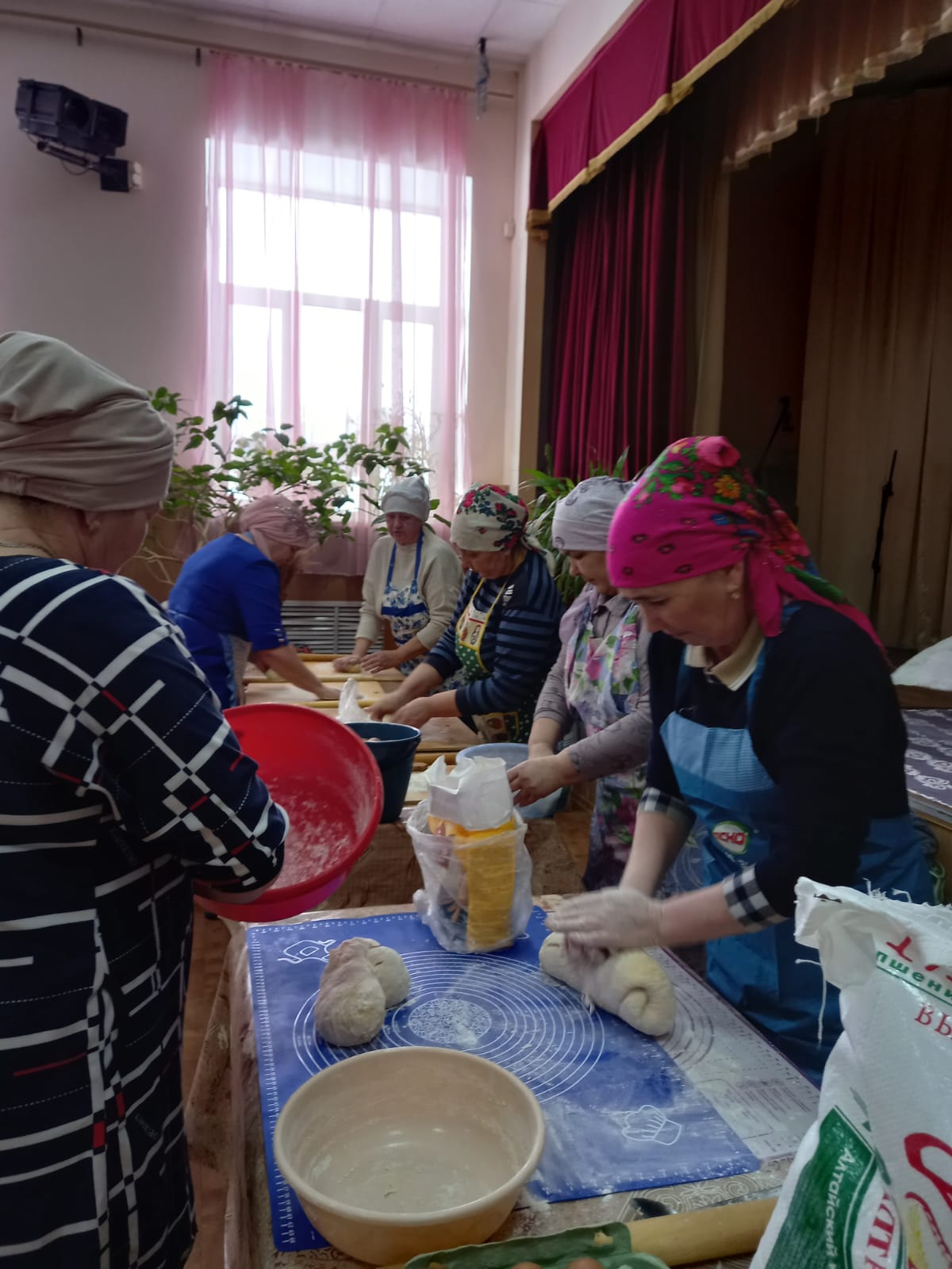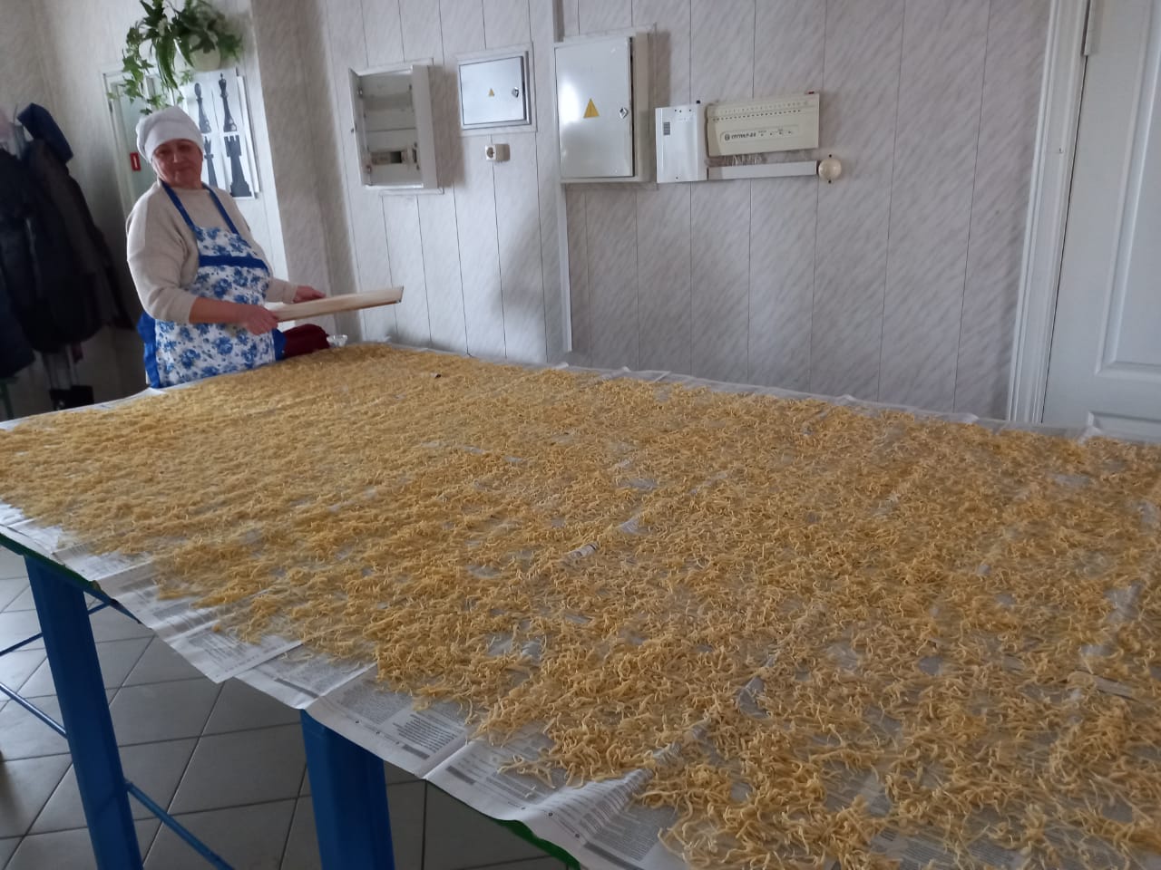 В зале Сухокурналинского СДК женщины села нарезали домашнюю лапшу для мобилизованных