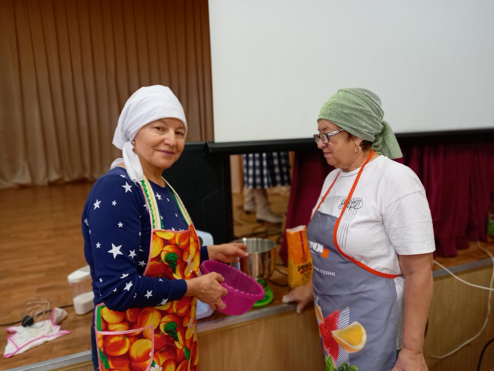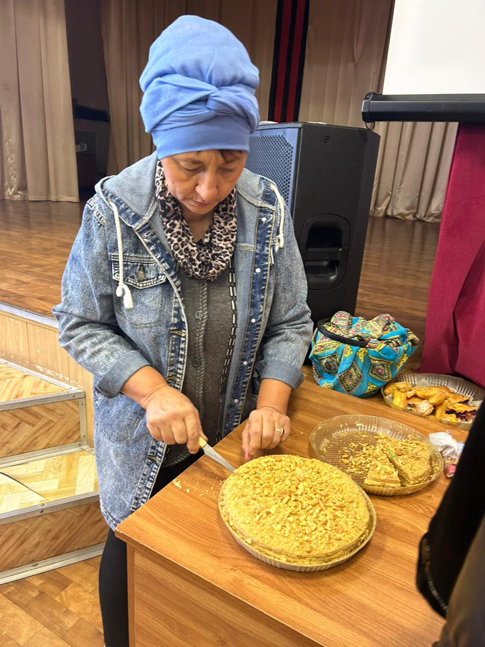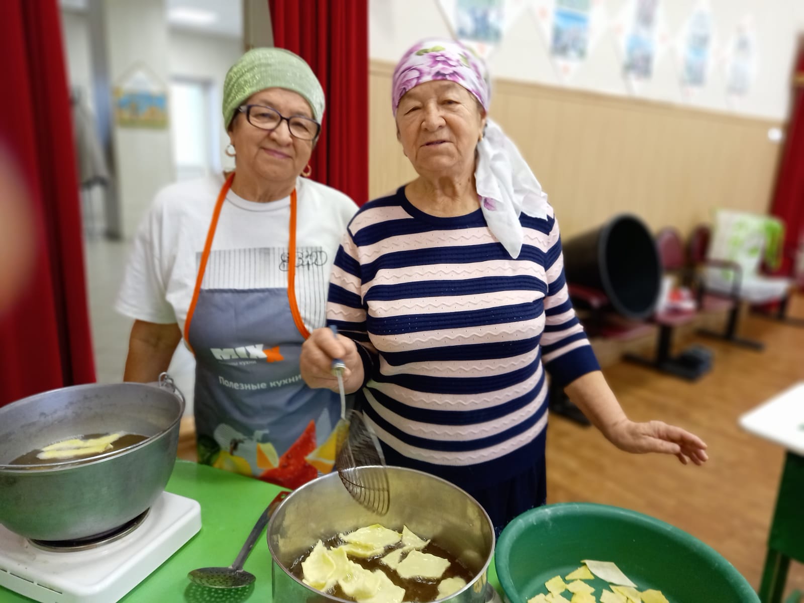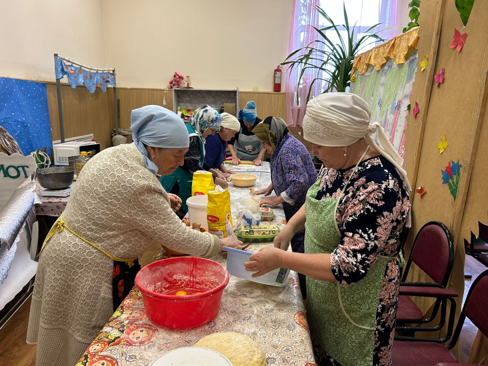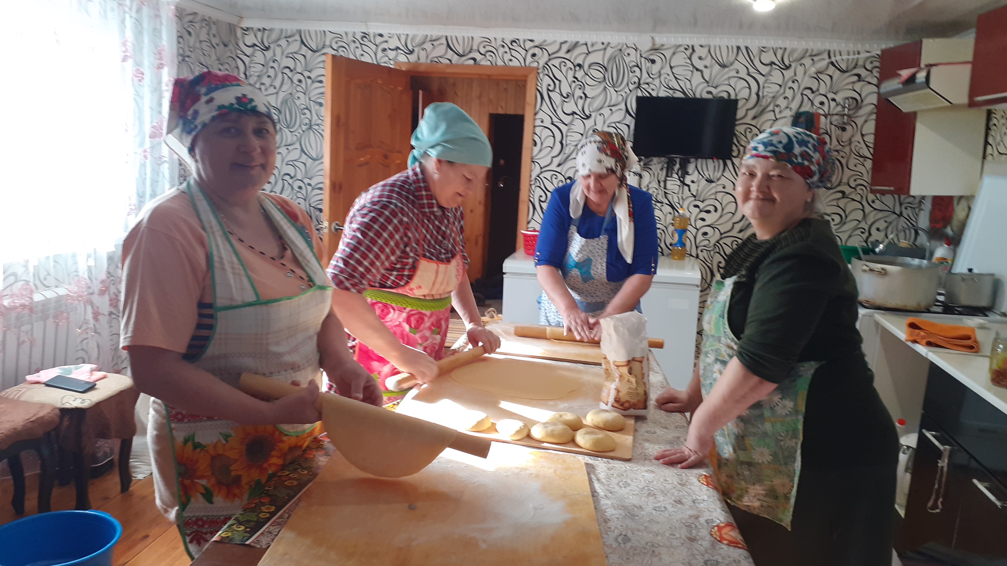 В зале Сухокурналинского СДК женщины села нарезали домашнюю лапшу для мобилизованных