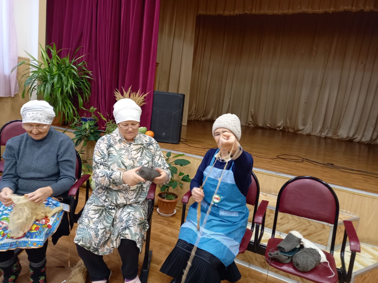 Женщины с.Сухие Курнали продолжают прясть шерсть, вязать носки для участников СВО