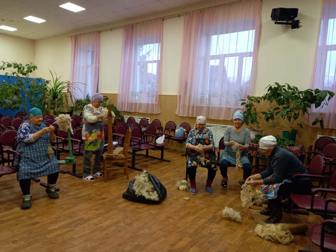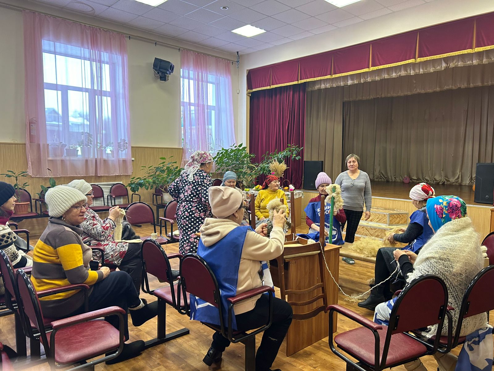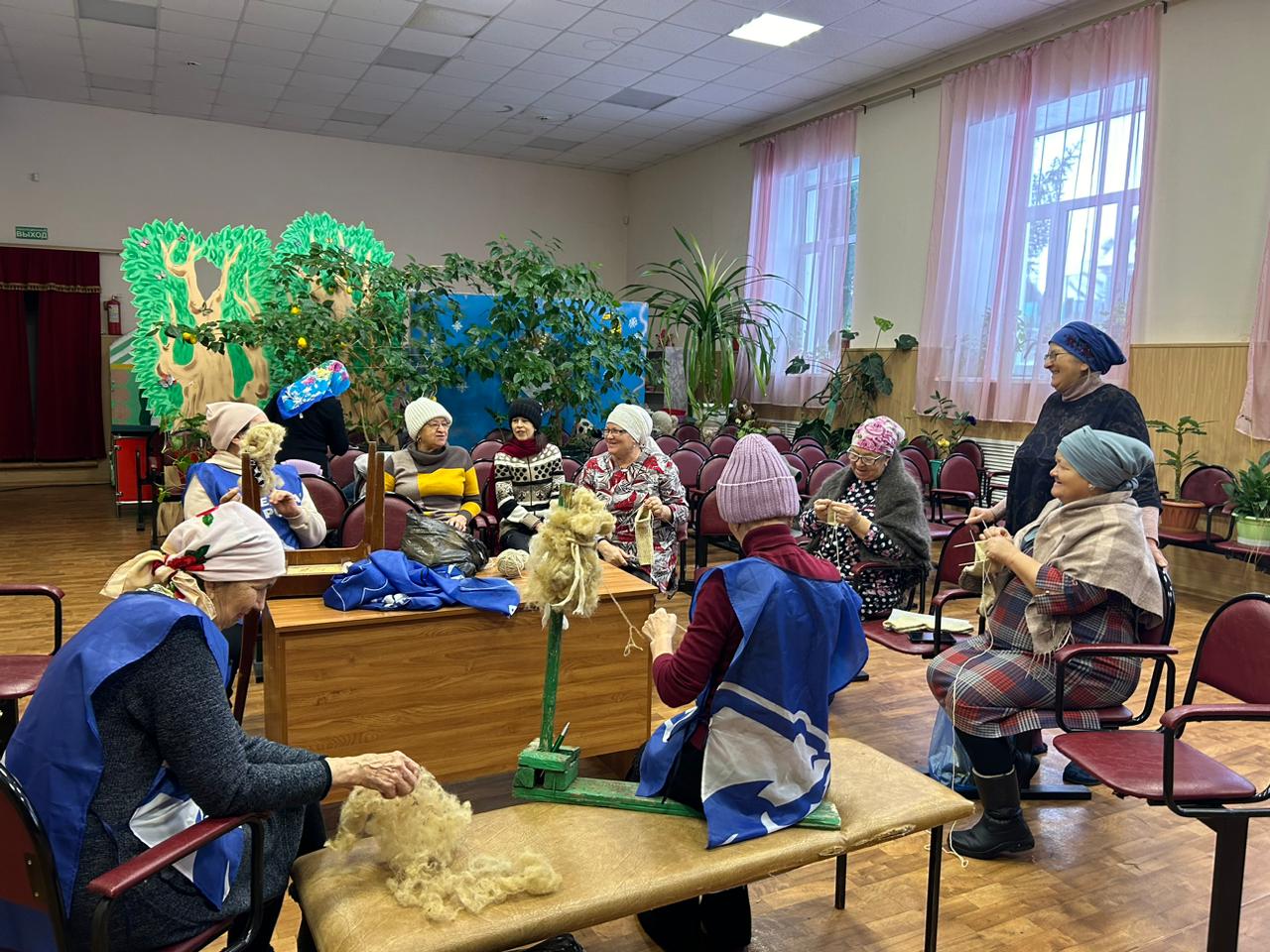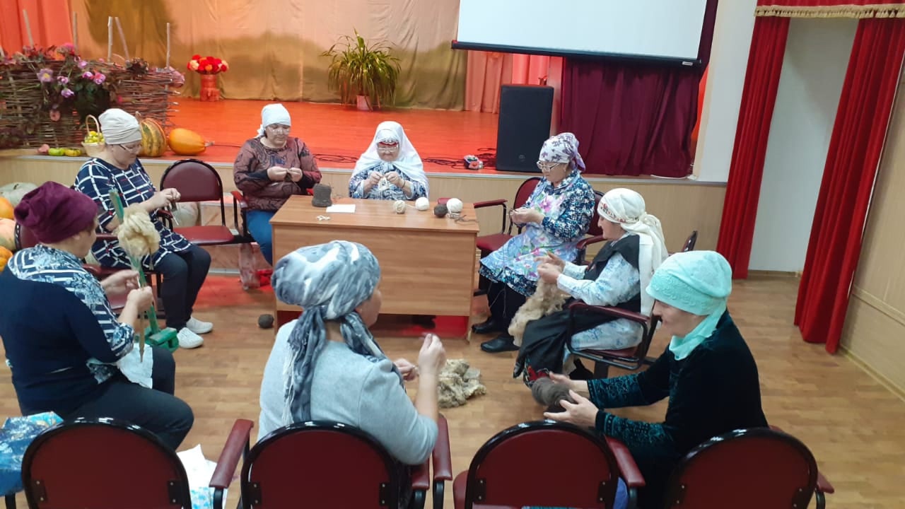 Женщины с.Сухие Курнали еженедельно по средам собираются прясть шерсть и вязать теплые носки для участников СВО.