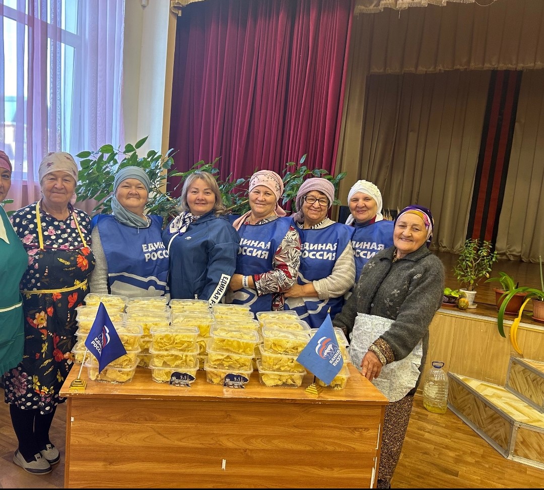 28 июля по зову доброй воли жительницы села Сухие Курнали приготовили для отправки мобилизованным в рамках СВО бойцов татарское национальное блюдо "Чак-чак". Так же жители села принесли продукты питания, варенья и овощные заготовки для отправки гуманитарным грузом в зону СВО.Спасибо всем неравнодушным односельчанам.