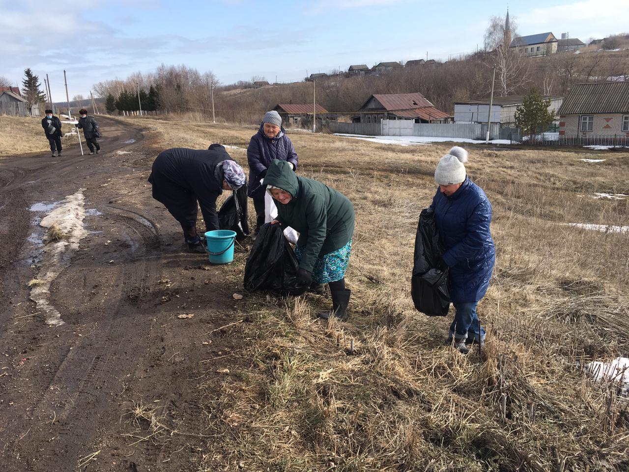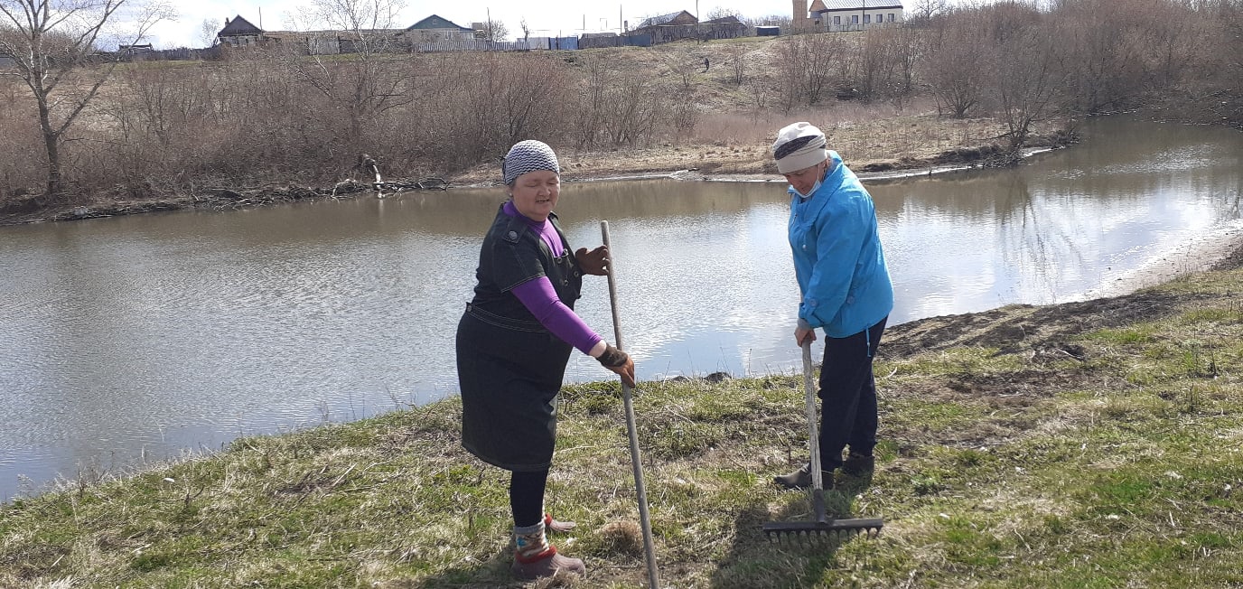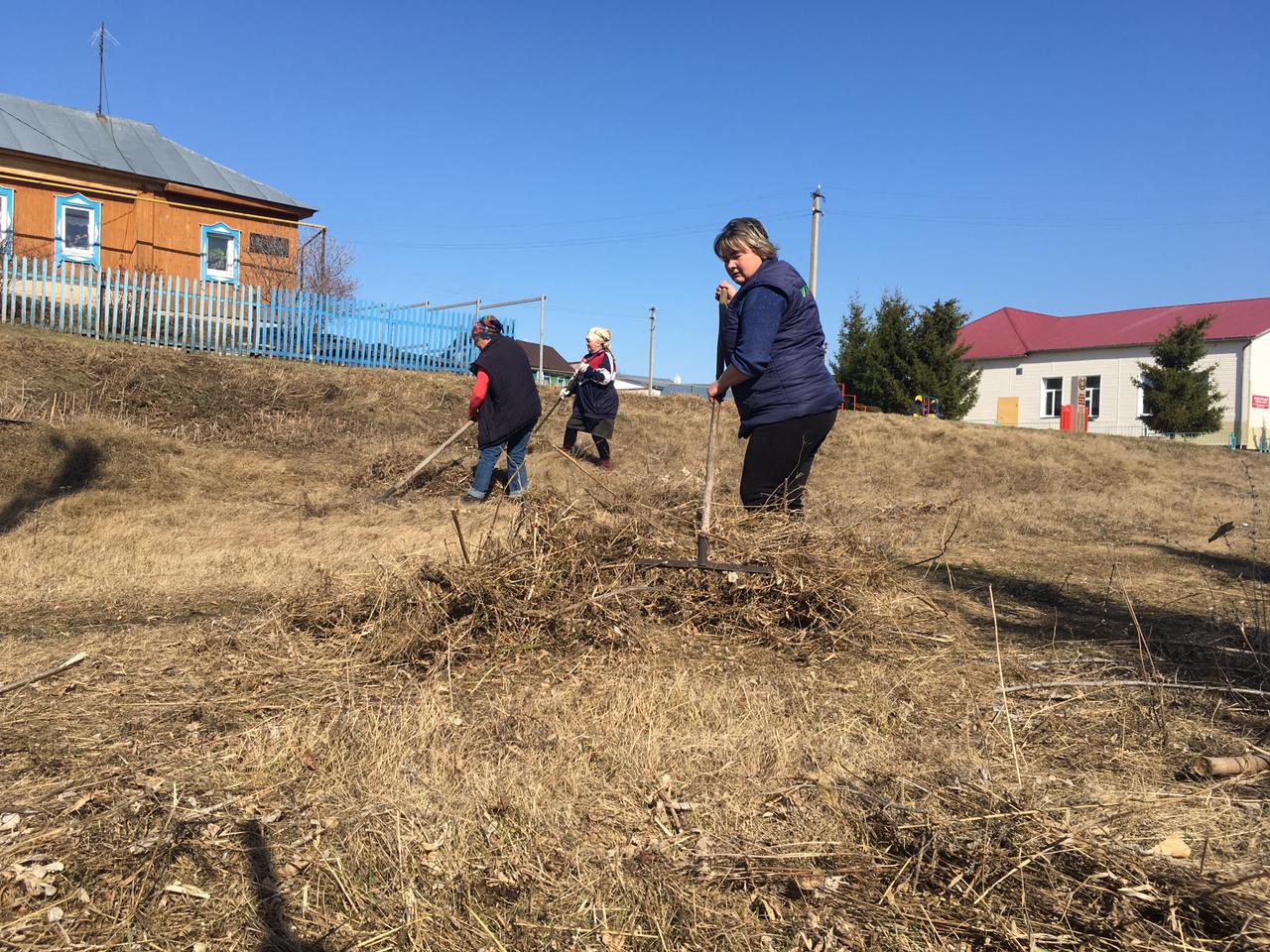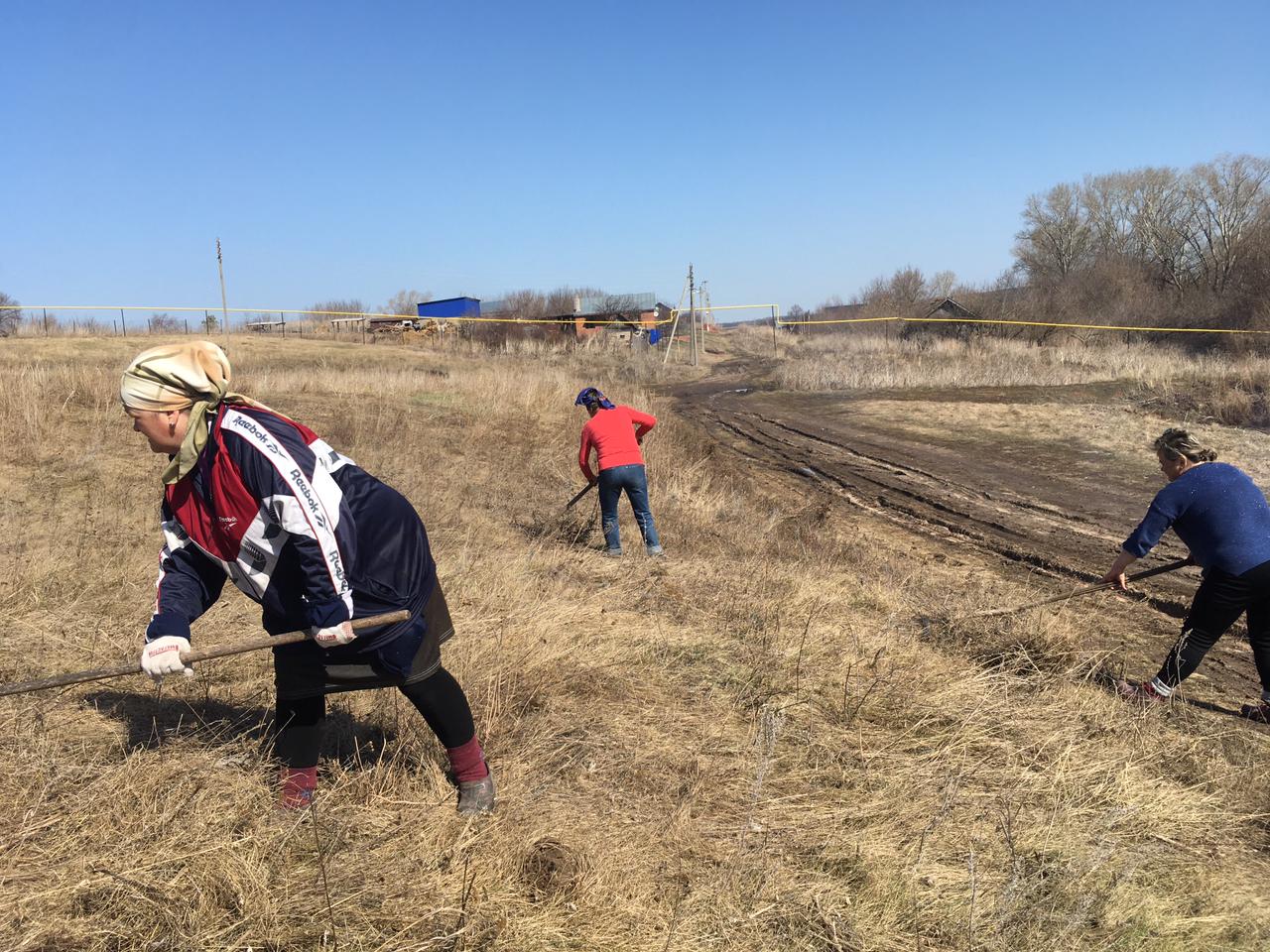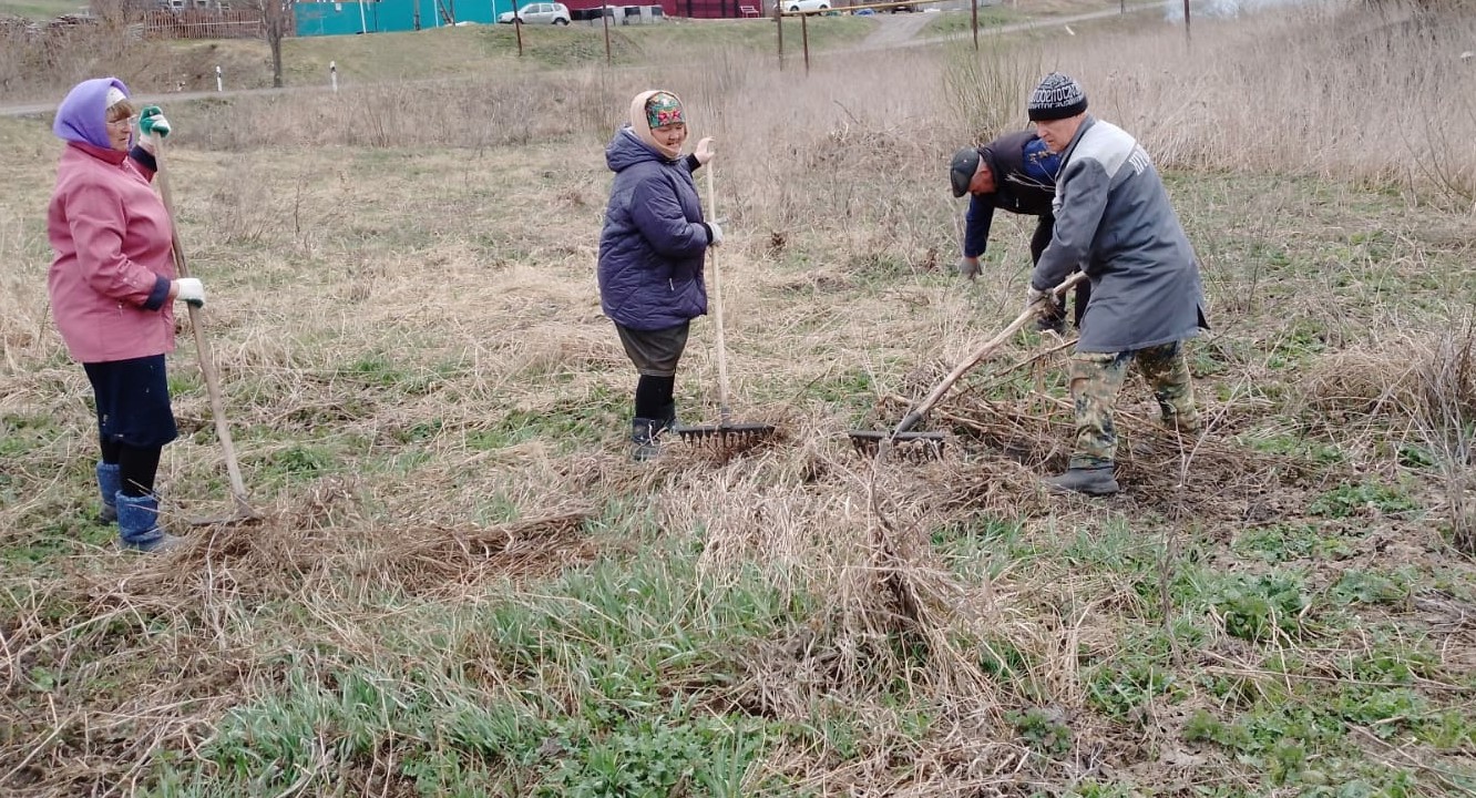 Жители села Сухие Курнали на уборке территории села