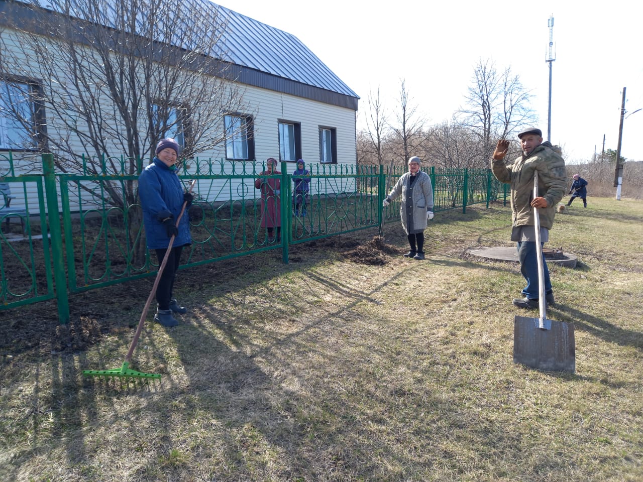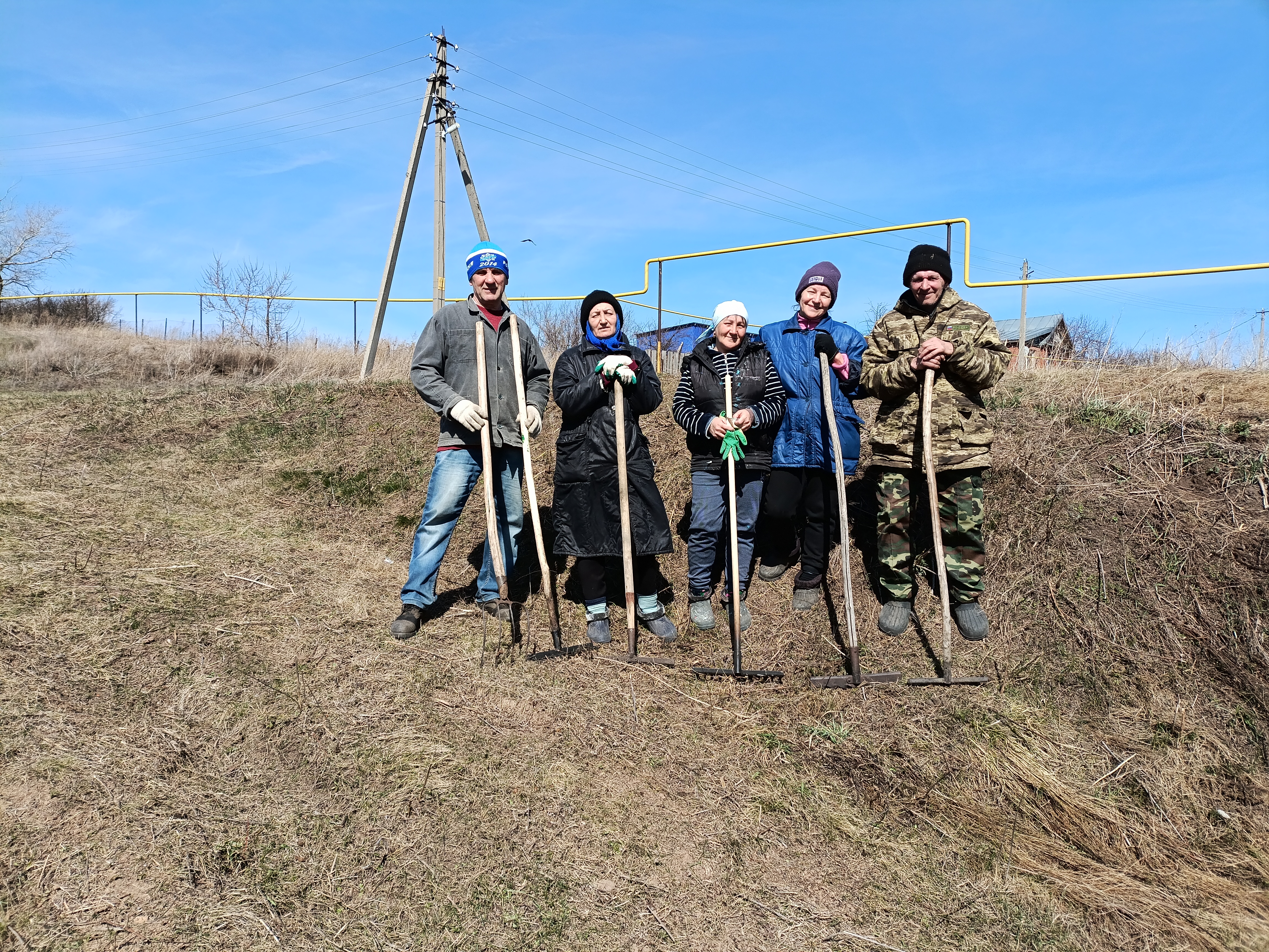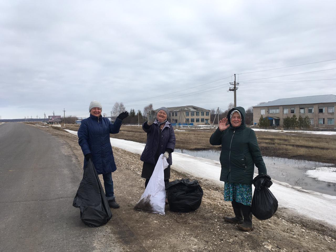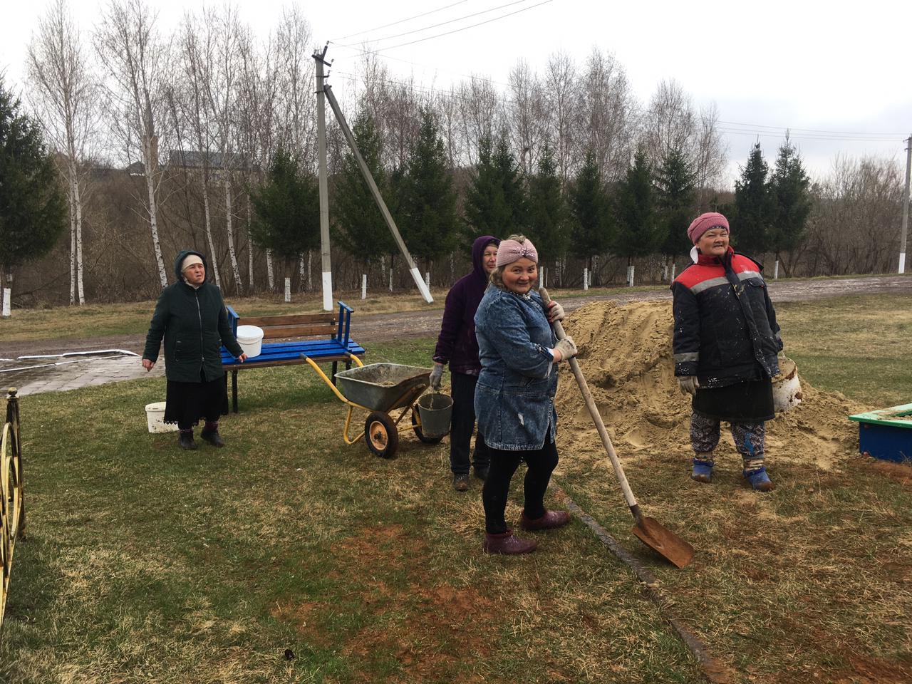 Жители села Сухие Курнали на уборке территории села