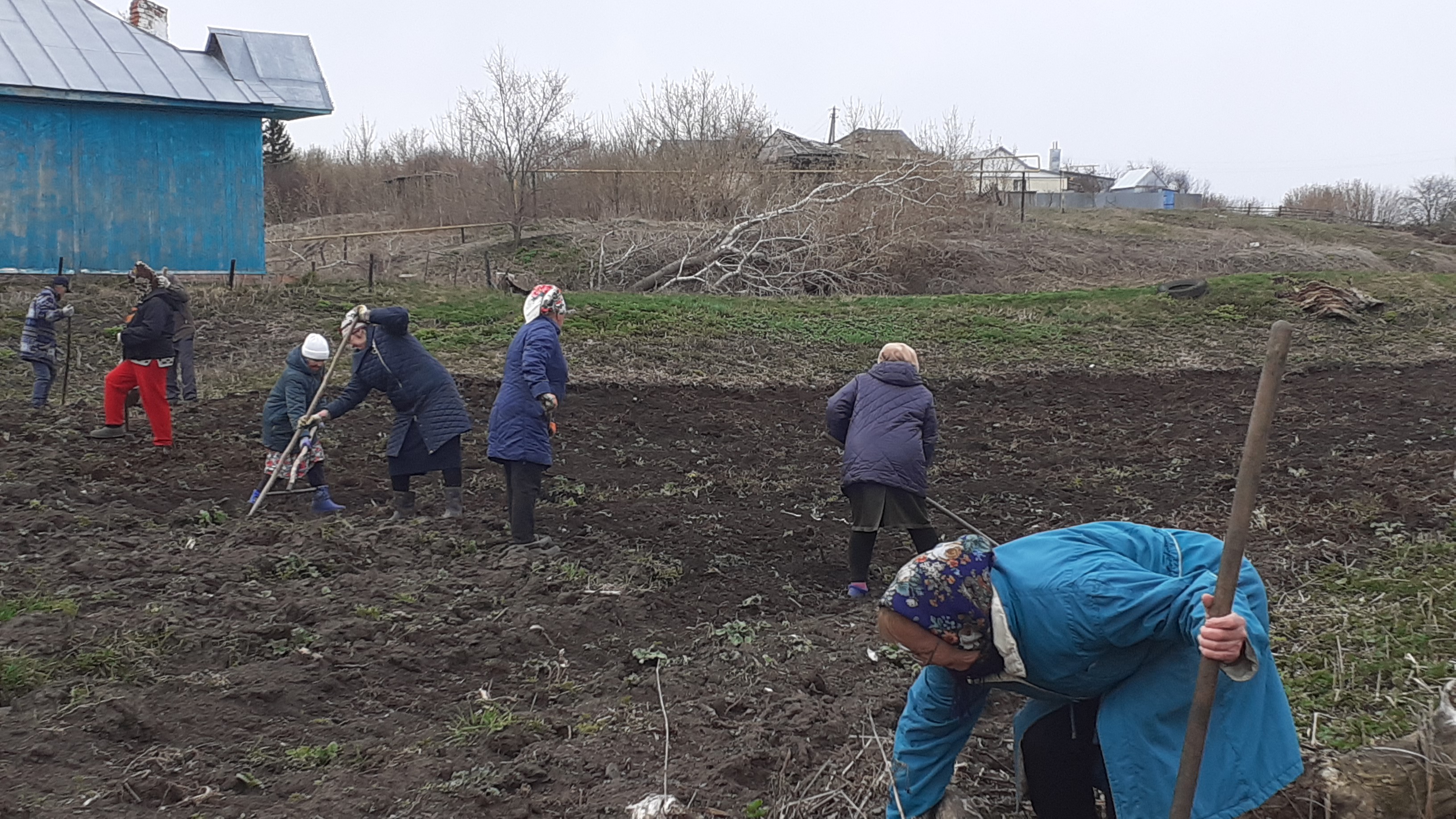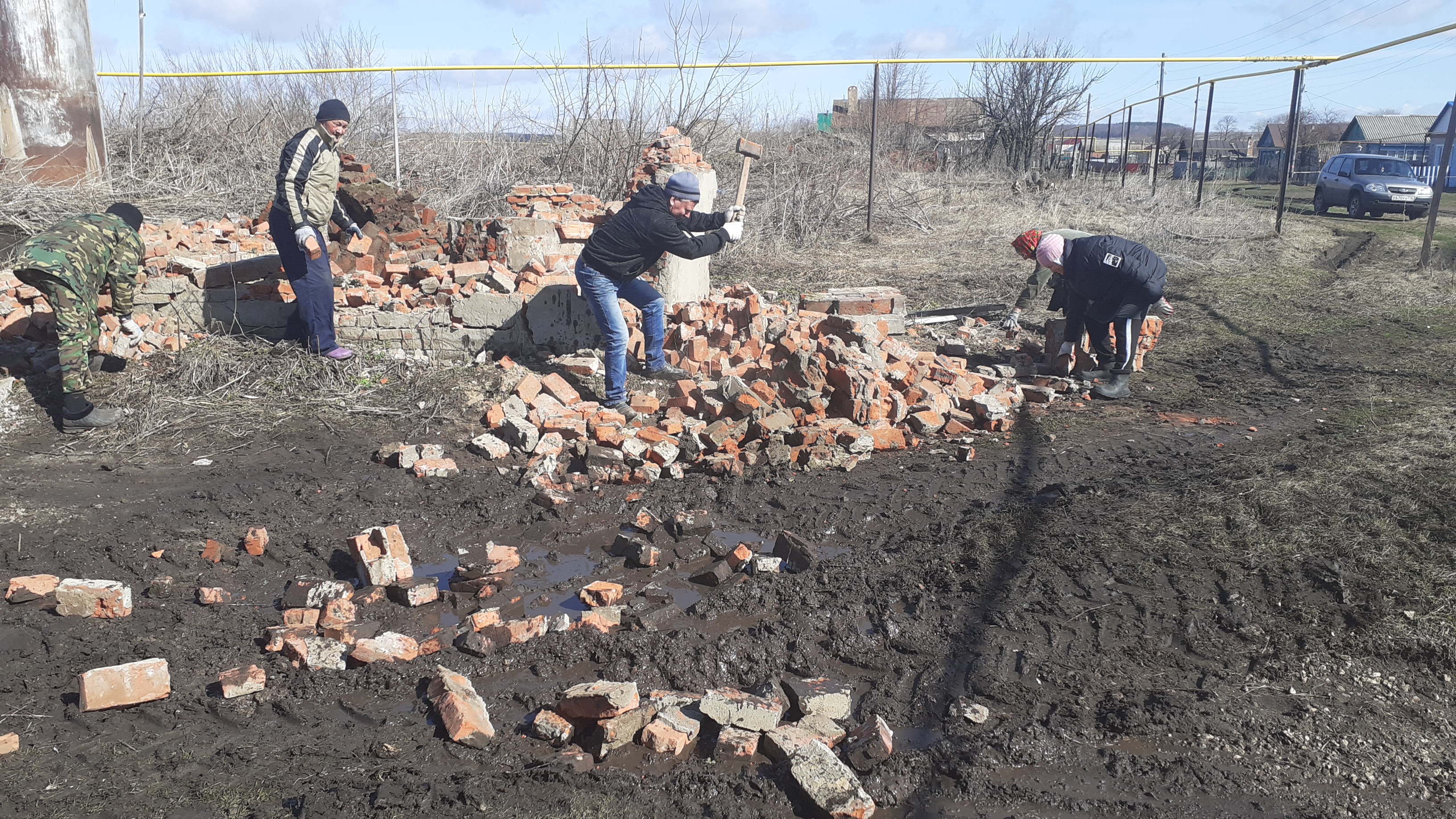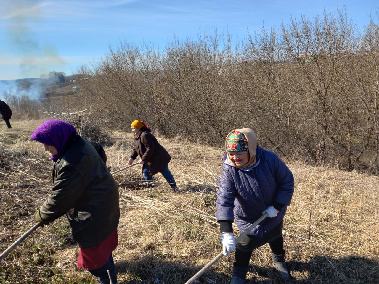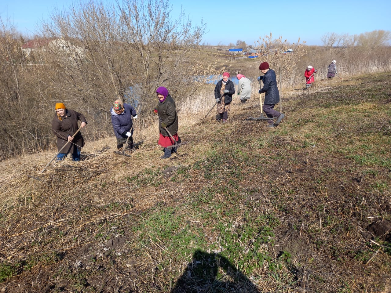 Жители села Сухие Курнали на уборке территории села