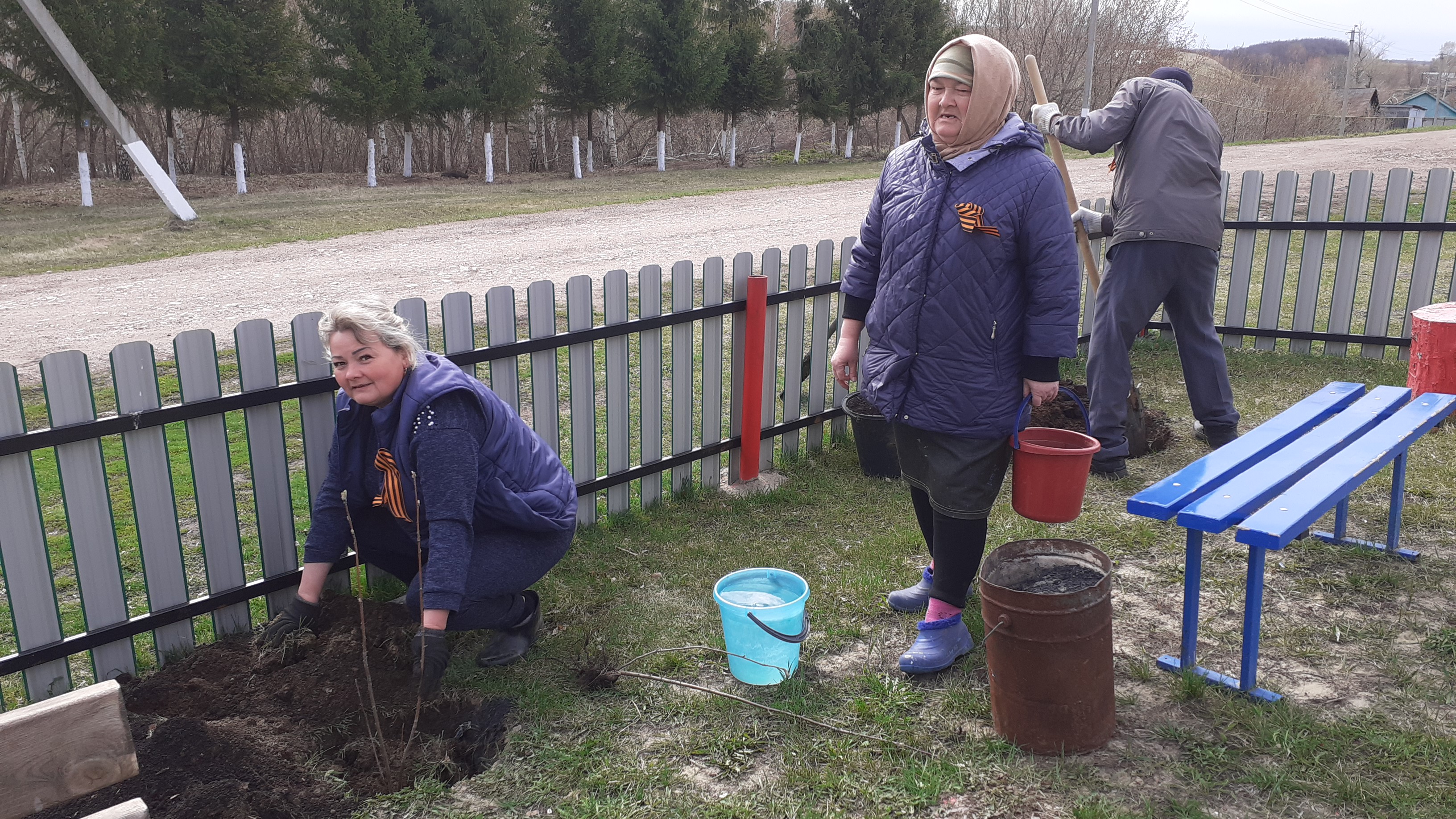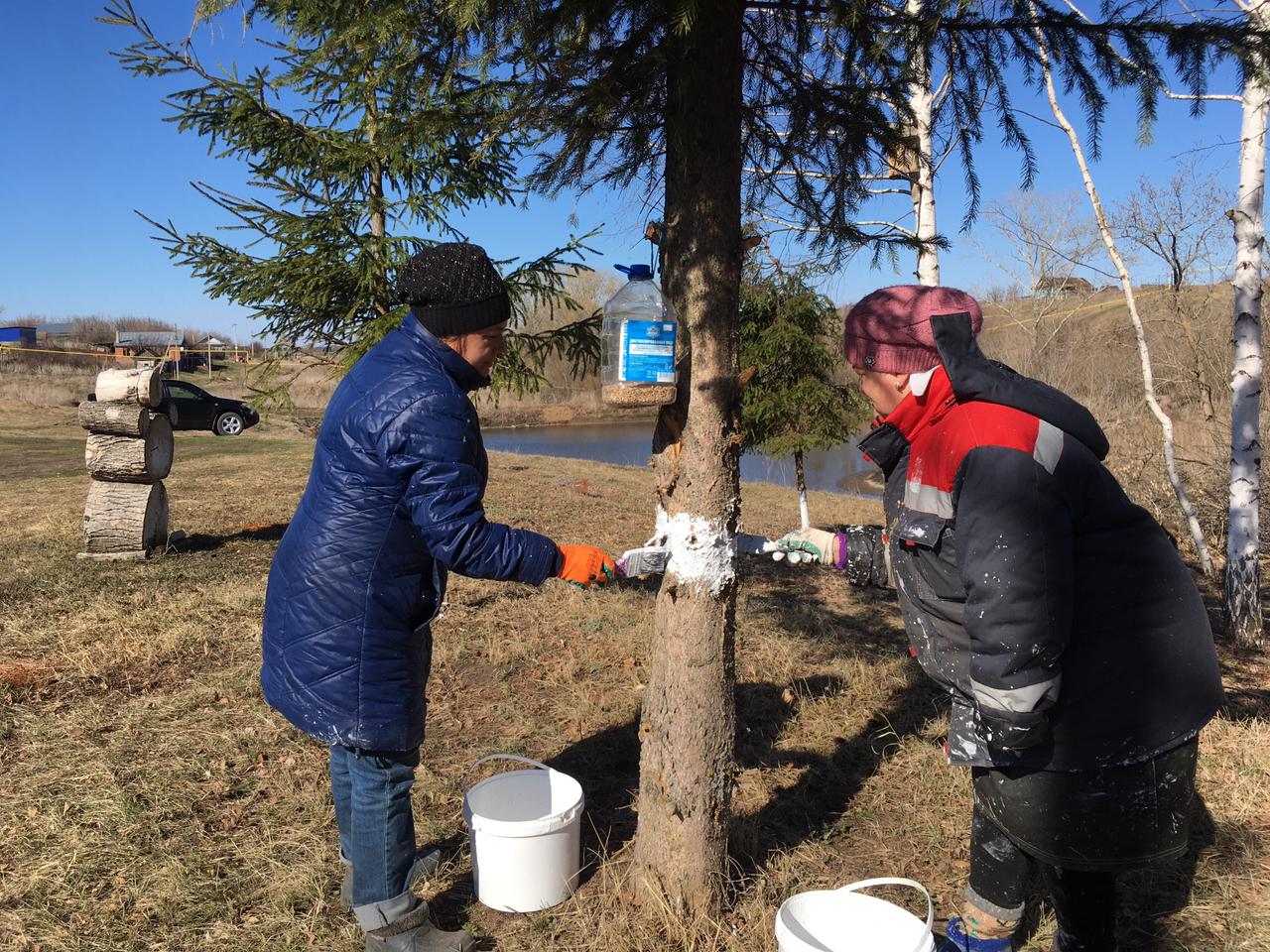 Уборка территории от сухостоя, покраска столбов, благоустройство памятника, посадка деревьев