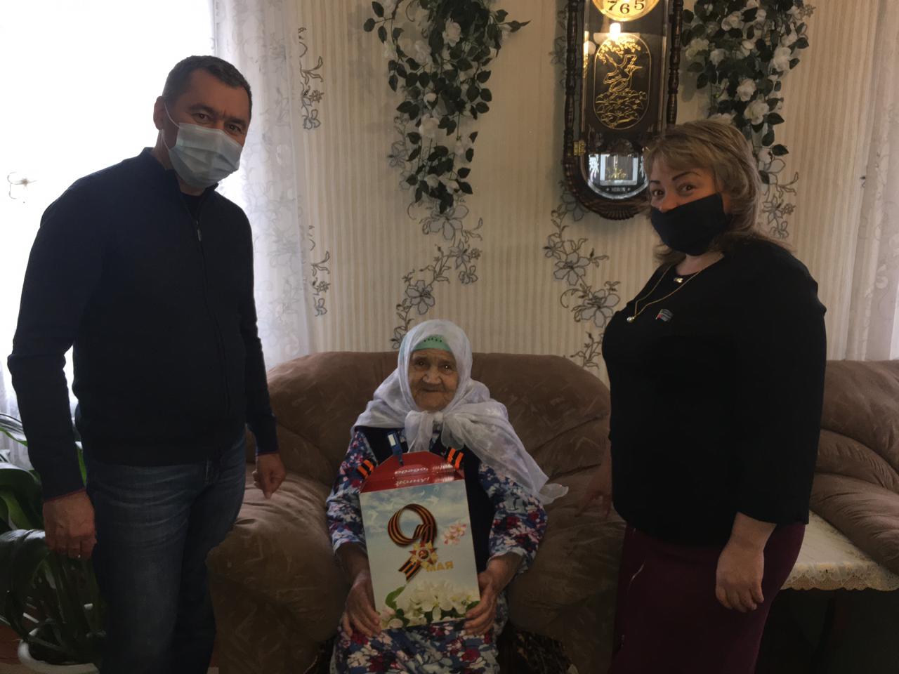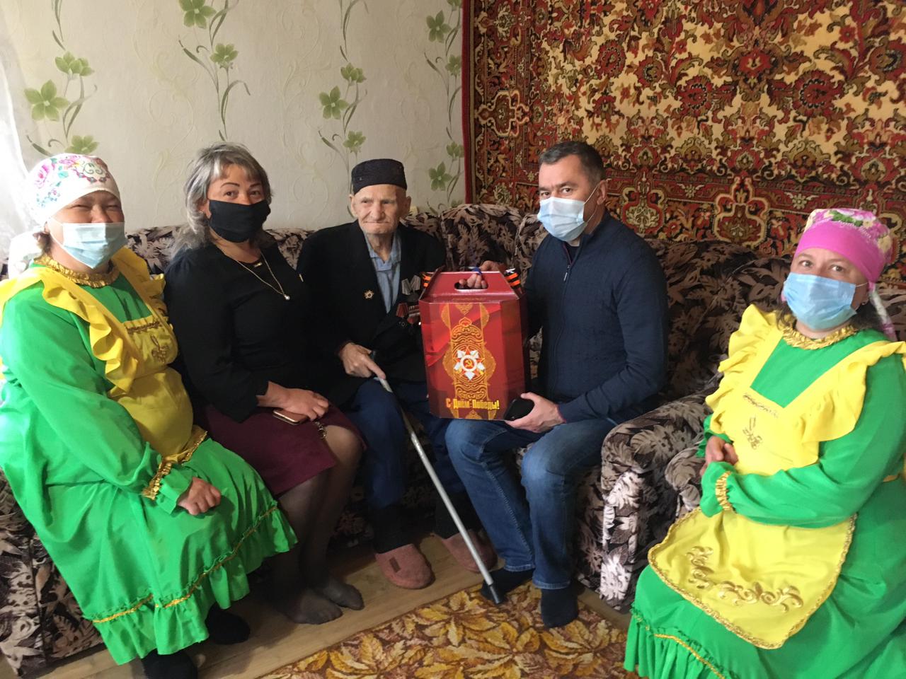 24 апреля 2021. Вручение продуктовых пакетов участнику Великой Отечественной войны Ризванову Нагиму Гимрановичу и вдове участника Великой Отечественной войны Ахметовой Сание Хузеевне Главой Курналинского сельского поселения Казаковой Д.Б. и депутатом районного Совета Алексеевского муниципального района Вильдановым Ильнаром Хамитовичем