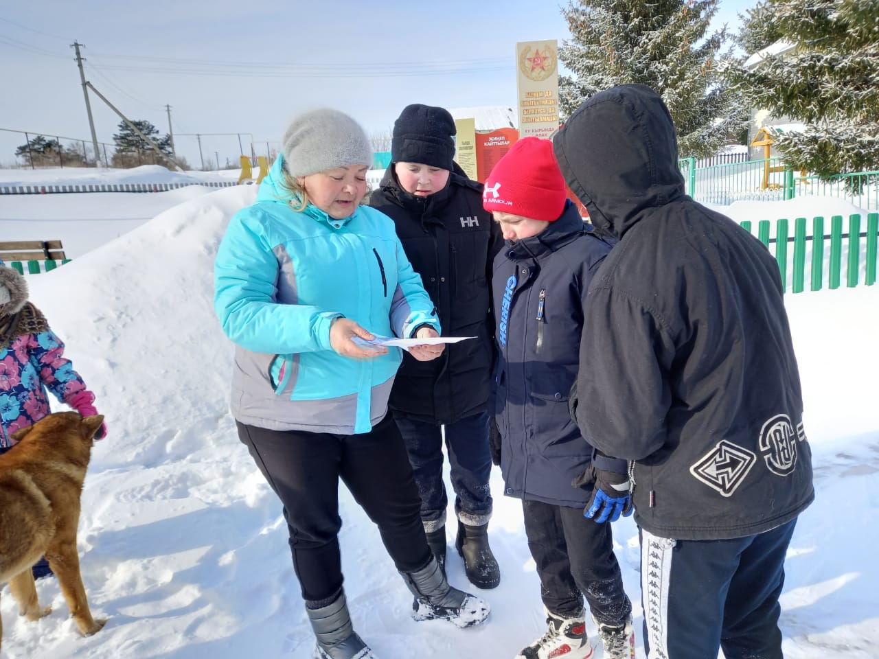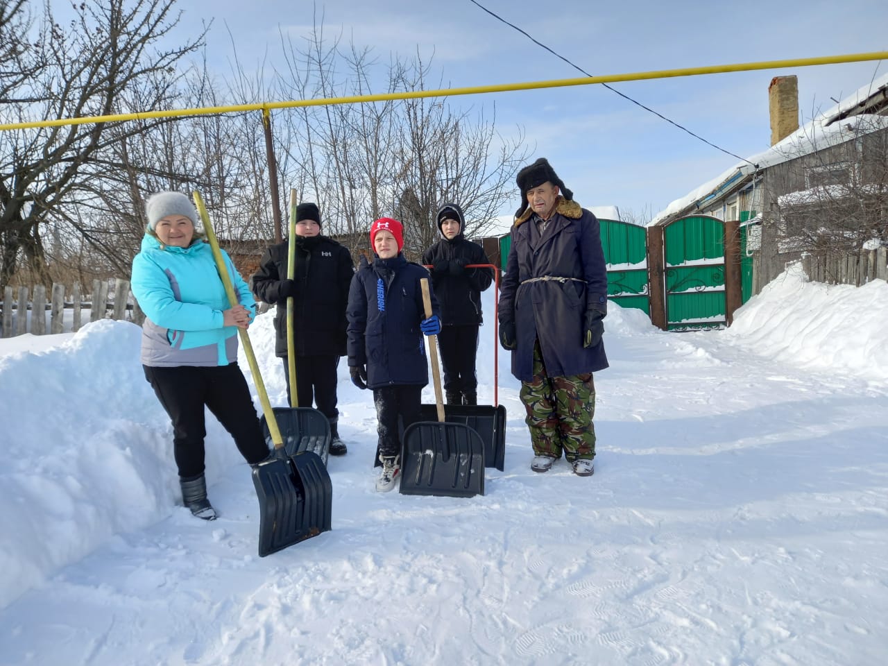 Руководитель Курналинского сельского поселения Казакова Д.Б. совместно с детьми поздравили с днем защитников Отечества одиноко проживающего инвалида Муртазина Фоата Ахатовича и помогли ему очистить снег.