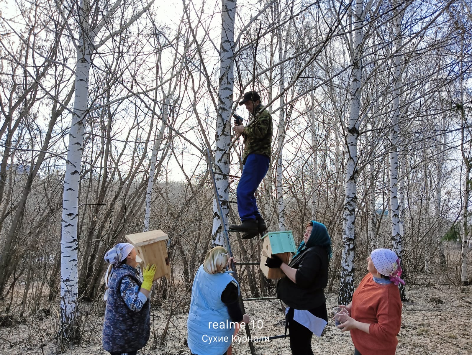 В рамках республиканского конкурса Эковесна - "Помоги пернатым" труженик тыла Казаков Нургалям Нигматшевич изготовил и принес в парк скворечник, волонтеры села Сухие Курнали присоединились к акции.