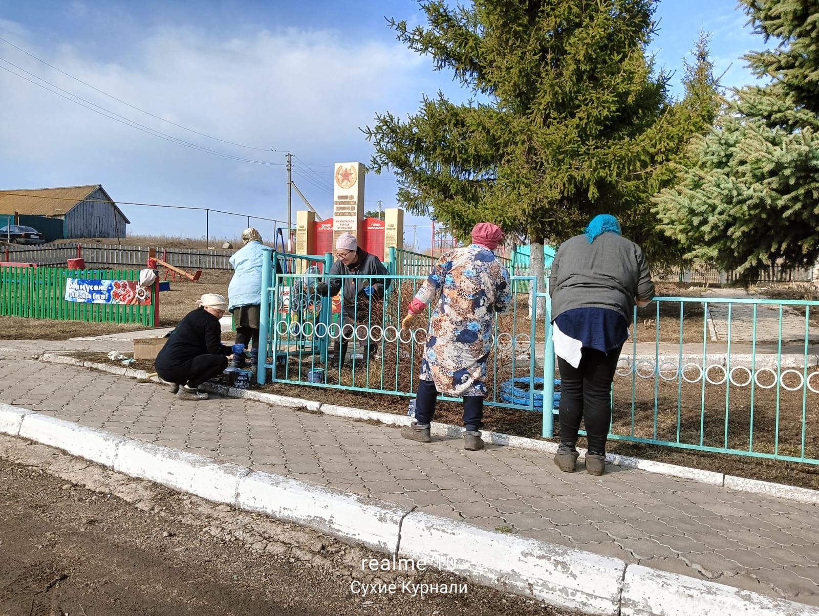 Продолжается работа в рамках проведения санитарно-экологического двухмесячника по очистке территории села Сухие Курнали. Неравнодушные жители к 80 летию Победы покрасили заборы возле памятника и территории сельского дома культуры