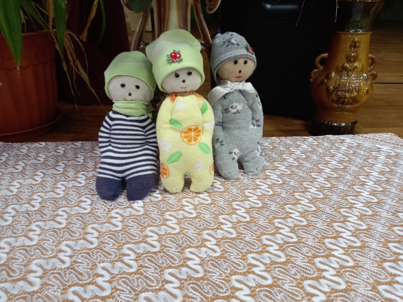 Жительница с.Сухие Курнали Абдрахманова Альфия занимается для души шитьем татарского народного женского головного убора - калфак. Представляем образцы её работ. Еще она шьет из подручного материала куклы.