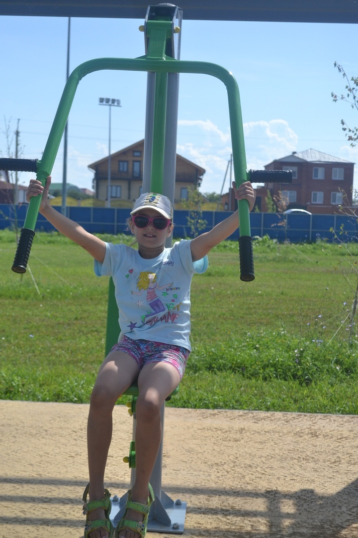 Марина Александровна рассказала, что детям особенно приглянулись спортивные тренажеры, выставленные в конце парка. Ребята с большим удовольствием устремились их тестировать.