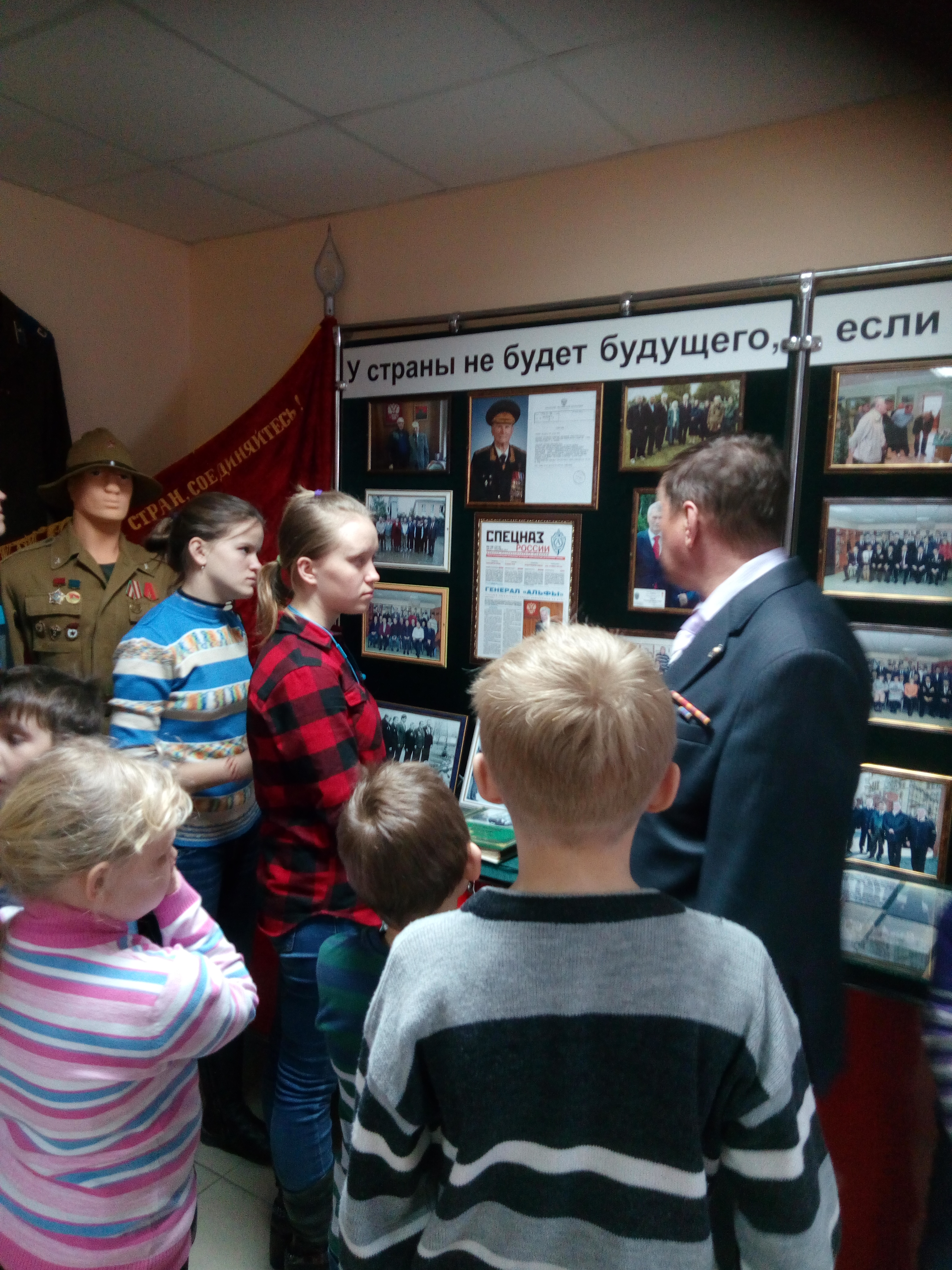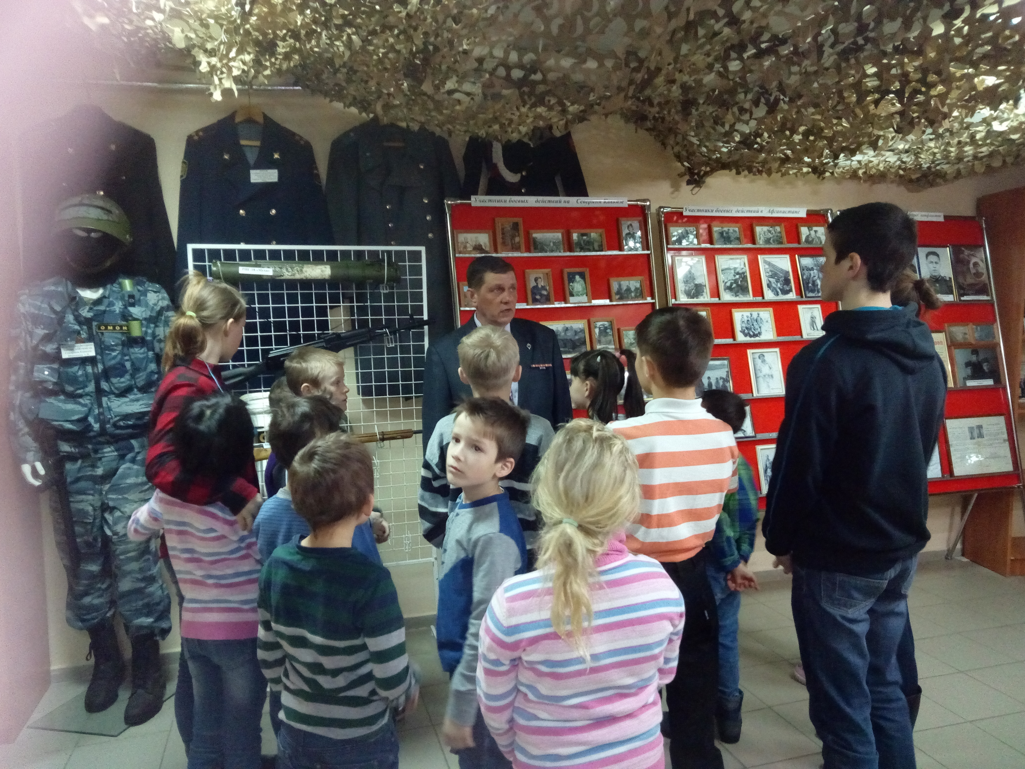 Для детей была проведена очень интересная и познавательная экскурсия по залу музея с разными экспозициями, экспонатами, фотографиями которые помогли понять и увидеть те годы, в которые солдаты Алексеевского района воевали в Афганистане и Северном Кавказе, защищая нашу Родину.