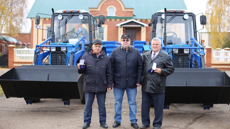 Район башлыгы Сергей Демидов көзге ярминкәдә авыл җирлекләре башлыкларына яңа трактор ачкычларын тапшырды.