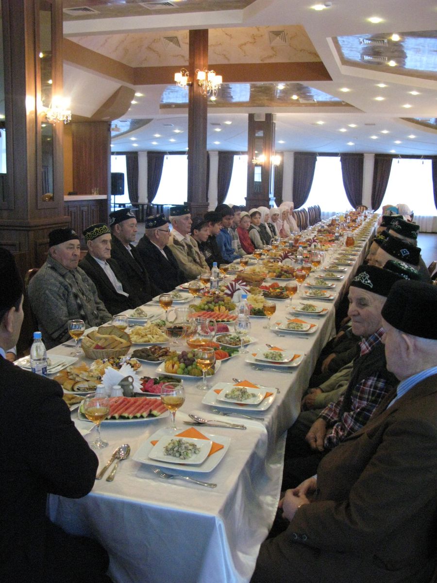 Аллаһы Тәгаләне зурлап тәкъбир әйтелгәннән соң, Рөстәм хәзрәт барлык килә алган кешеләрне бистәнең“Оазис” кафесына дәште. Анда ул көнне өйләдән соң зур мәҗлес оештырылган иде. “Алексеевскдорстрой” ААҖ генераль директоры Ф.В. Вәлиев иганәчелеге белән корбанга дип атап сыер чалынды. Мул ризыклы өстәл янында хаҗи Рөстәм хәзрәт тарафыннан Аллаһы Тәгаләнең ризалыгы өчен Коръән сүрәләре укылды һәм вәгазь сөйләнде. Телеңне йотарлык корбан шулпасын авыз иткән, башка тәгамнар һәм хуш исле чәй белән сыйланган халык бер авыздан әлеге чараны оештырган, әҗер-савап алган җитәкчегә ихлас күңелдән рәхмәт әйтте, аеруча да күңелләре тулган әби-бабайлар игътибар һәм үзләренә карата шундый илтифат күрсәткән һәркемгә саулык-сәламәтлек, эш-ләрендә зур уңышлар теләде.