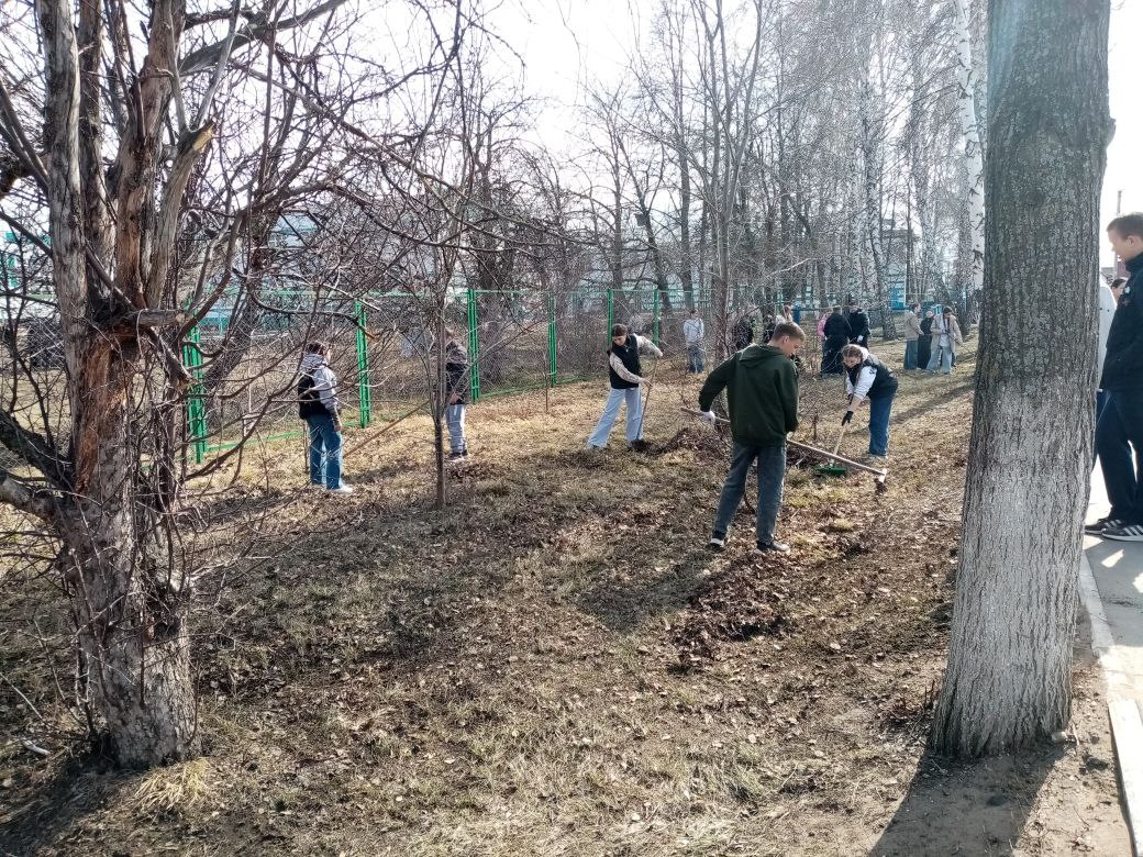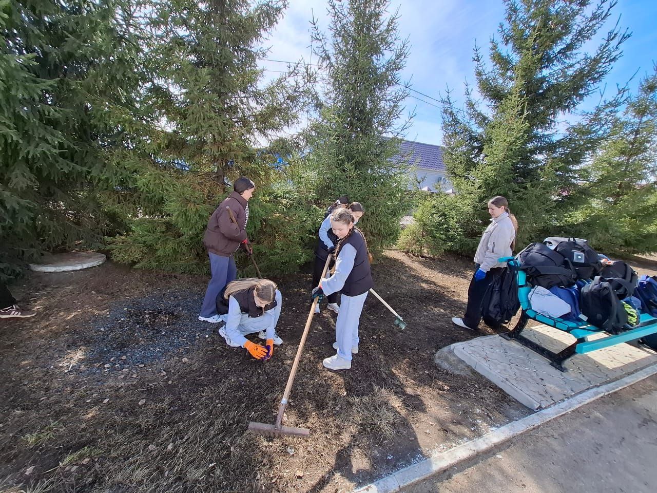 2 нче урта мәктәп укучылары мәктәп территориясен тәртипкә китерү һәм аны тагын да чистарак һәм уңайлырак итү өчен өмәгә чыктылар.